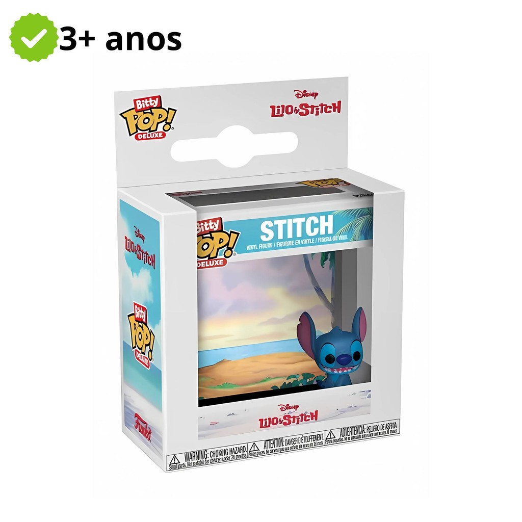Original Funko Bitty Pop! Deluxe Funko Stitch na Praia Vinil 2,3cm 3+ Figura de Ação Chaveiro Vinil