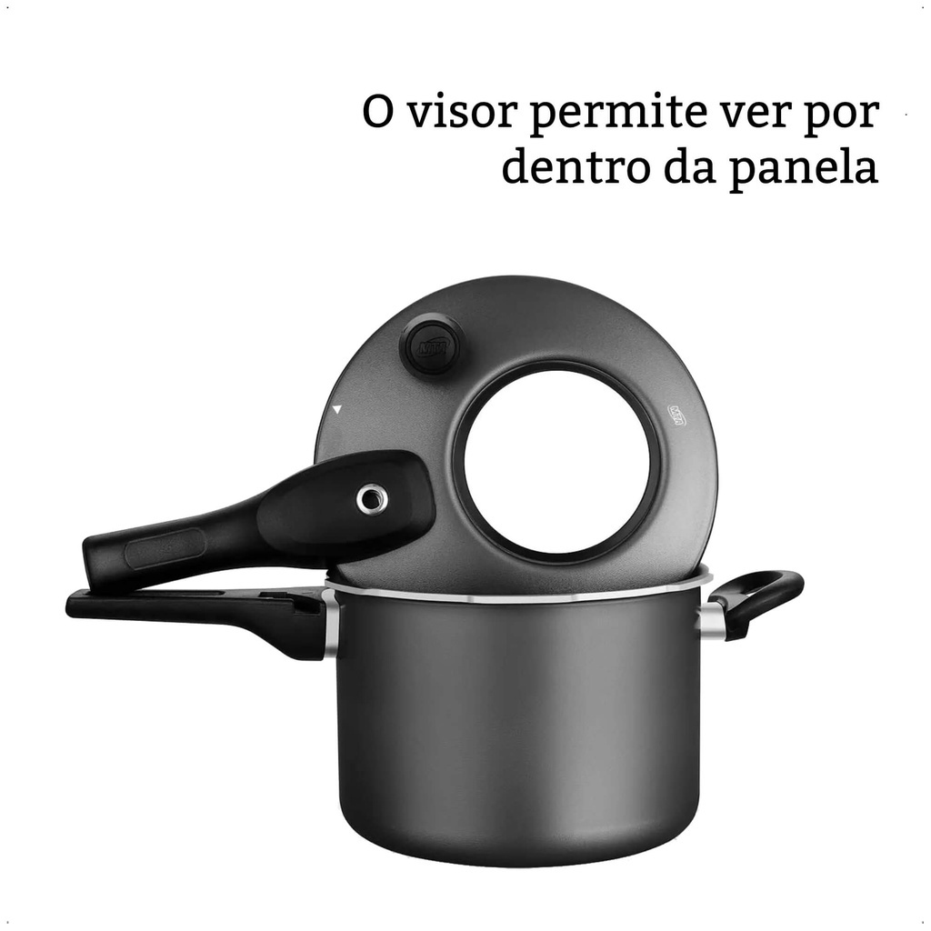 Panela De Pressão Grafite Antiaderente Com 4,5 Litros de Capacidade Fechamento Externo Superior MTA - 6600