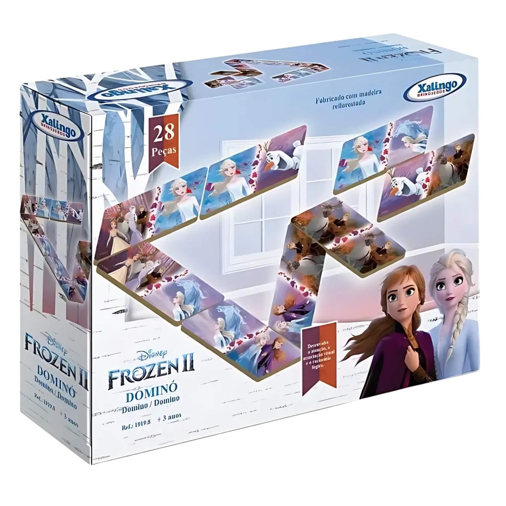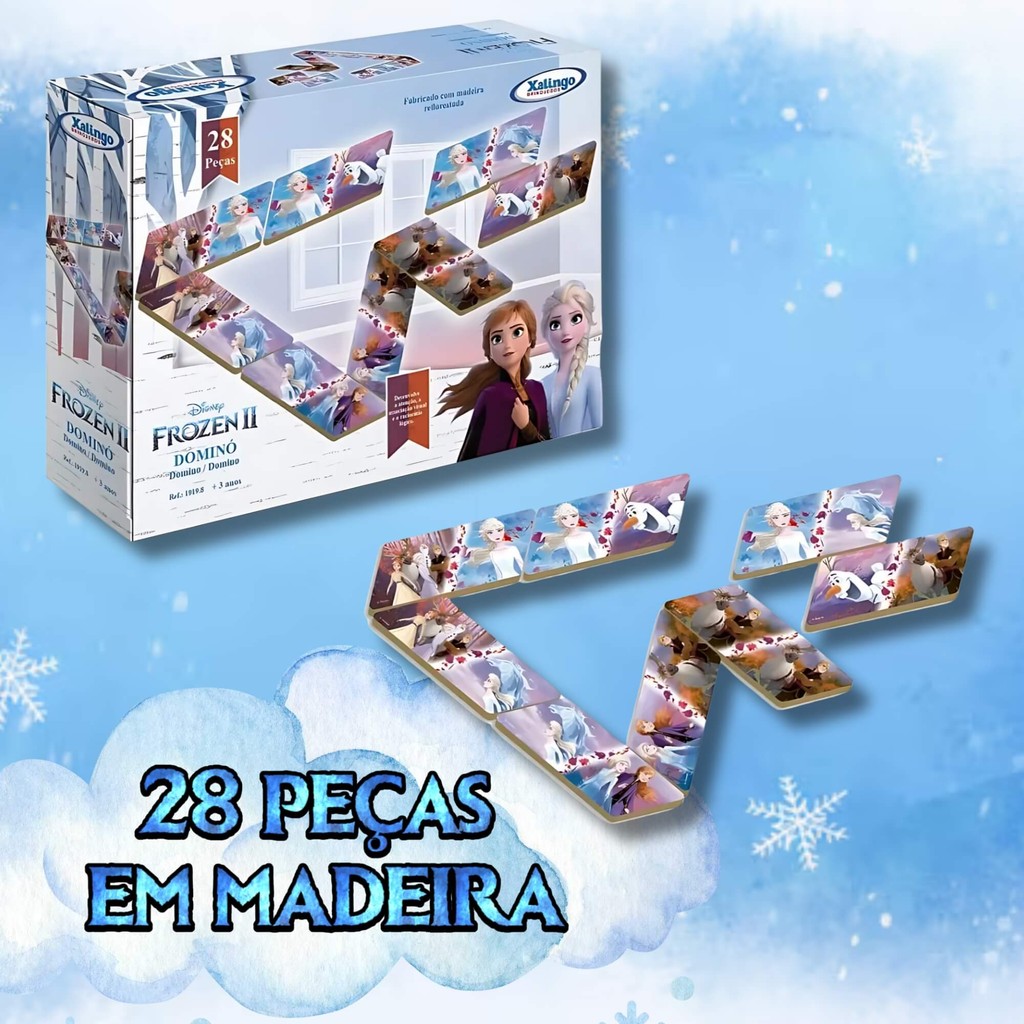 Jogo Dominó Infantil Educativo +3 Anos Em Madeira C/ 28 Peças Disney Frozen 2 Xalingo - 19198