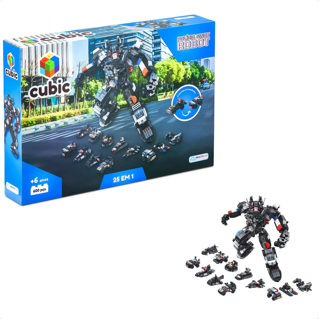 Brinquedo de Montar Cubic 25 em 1 Polícia Swat Robot 600 Peças Acima de 6 Anos Multikids - BR1616