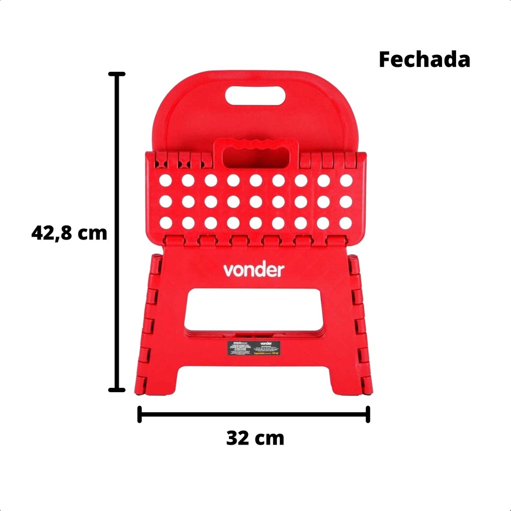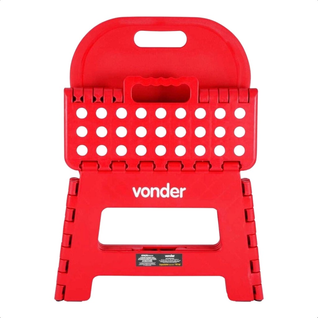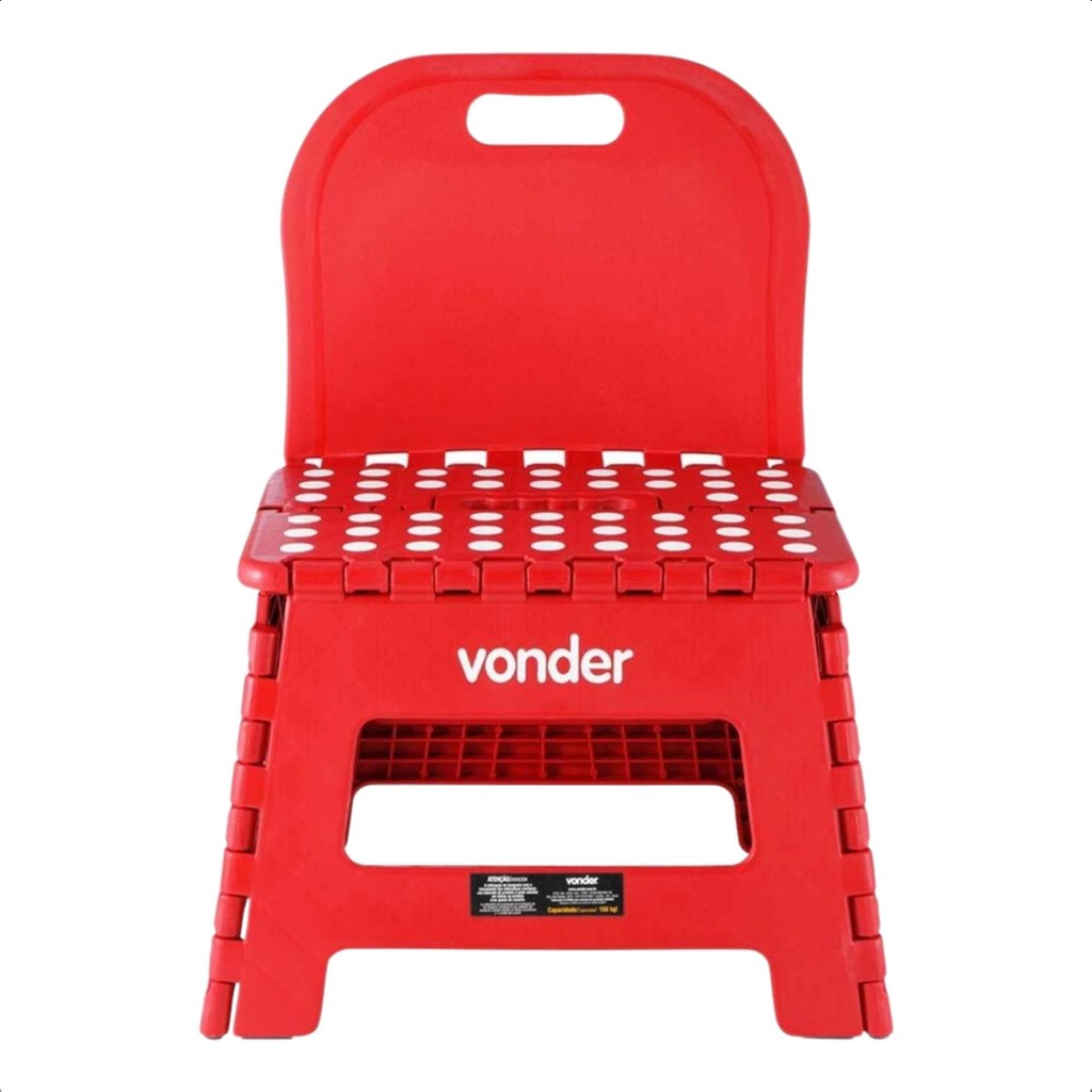 Banqueta Plástica Dobrável Vermelha 32x25x42,8cm Antiderrapante com Alça e Encosto Vonder 3540220002