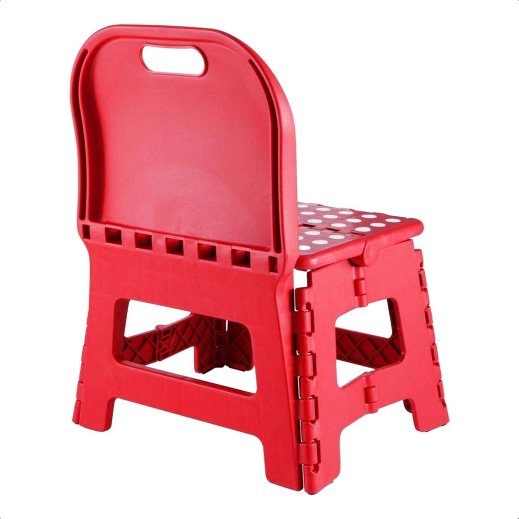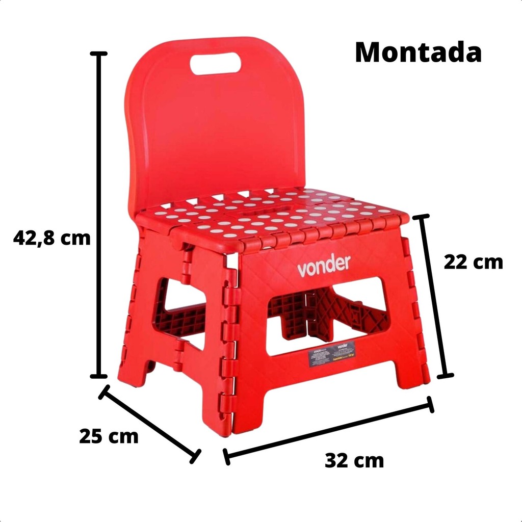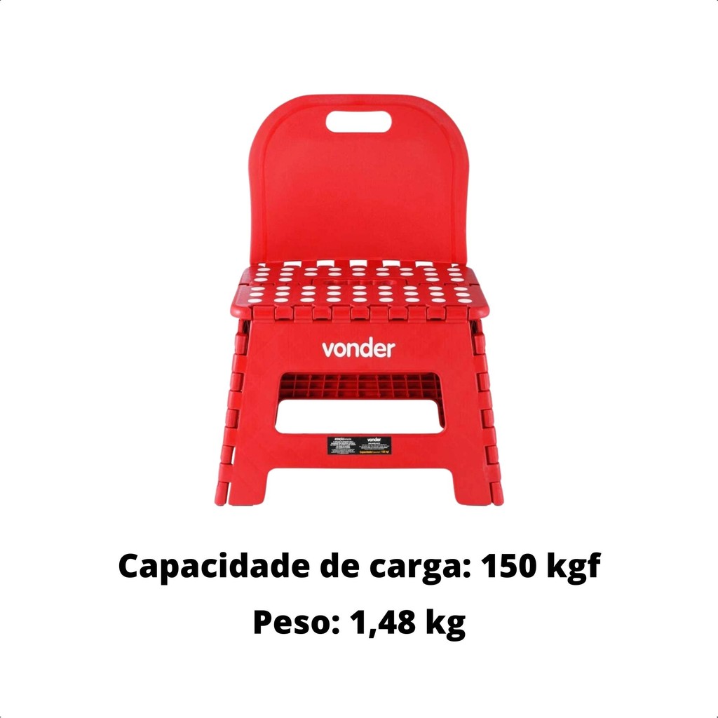 Banqueta Plástica Dobrável Vermelha 32x25x42,8cm Antiderrapante com Alça e Encosto Vonder 3540220002