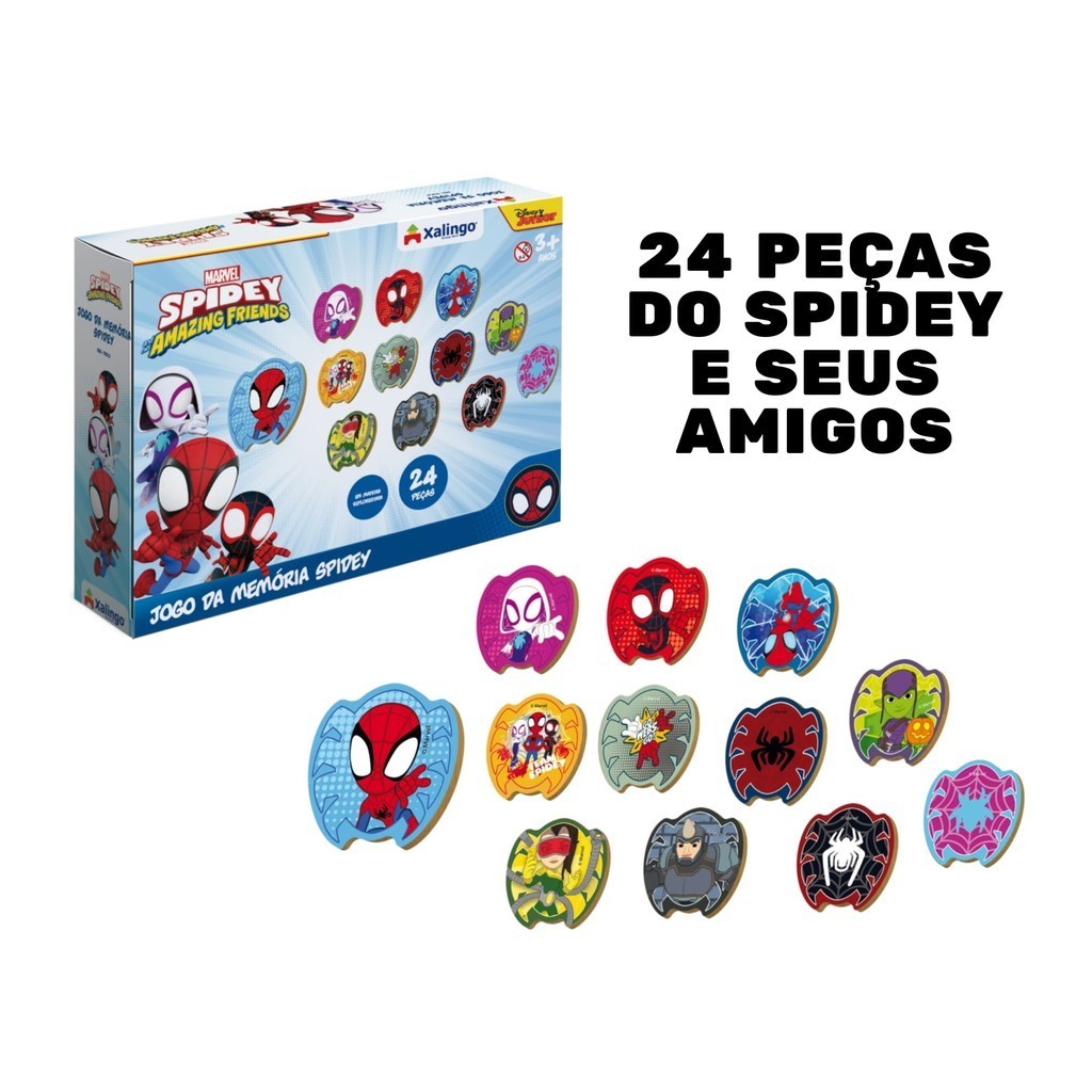 Brinquedo Infantil Jogo da Memória Spidey Amazing Friends Marvel - 24 peças - Xalingo 17810