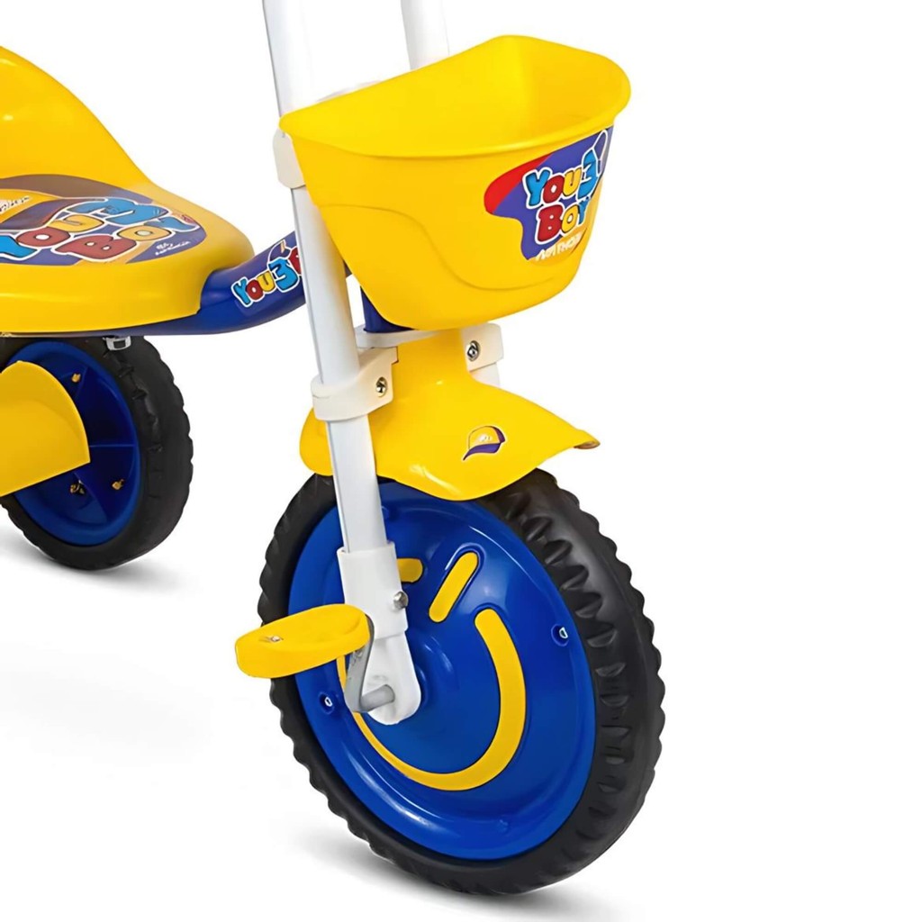 Triciclo Infantil C/ Cestinha Buzina Fon-fon Azul e Amarelo You 3 Boy Nathor Velotrol Criança