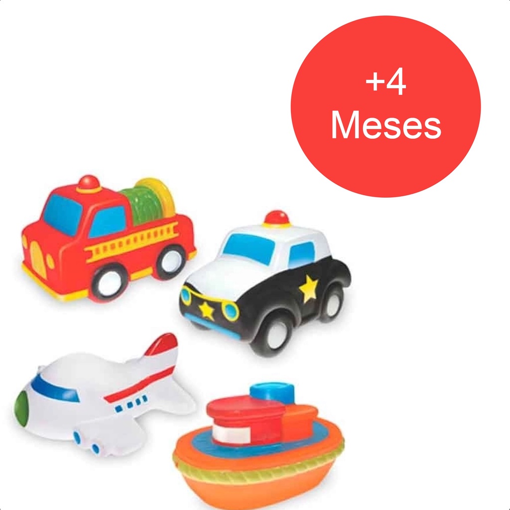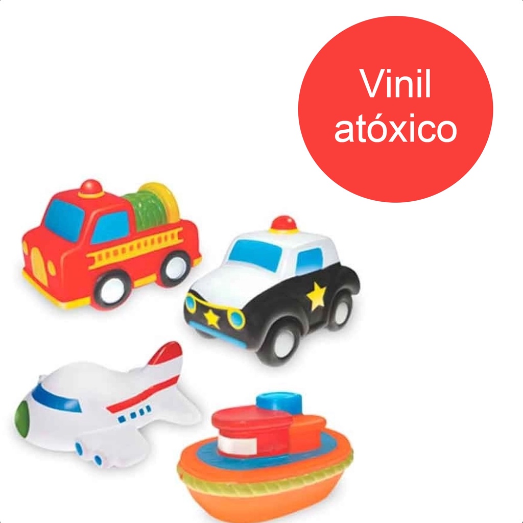 Brinquedo Coleção Fofinhos Transportes 4 Peças Vinil Atóxico +4 Meses Baby Líder - 5625