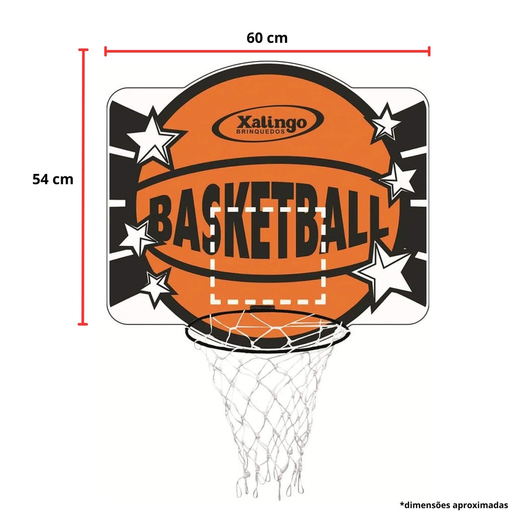 Kit Tabela de Basquete Infantil em MDF Ótima Fixação +6 Anos Xalingo + Bola de Basquete 7 Laranja