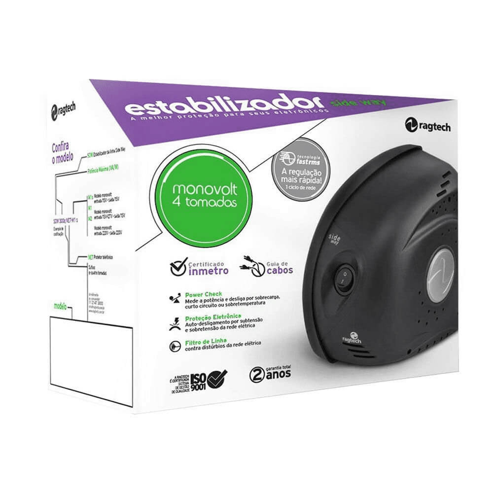 Estabilizador Ragtech 300VA Side Way 127V Monovolt Preto - 5301