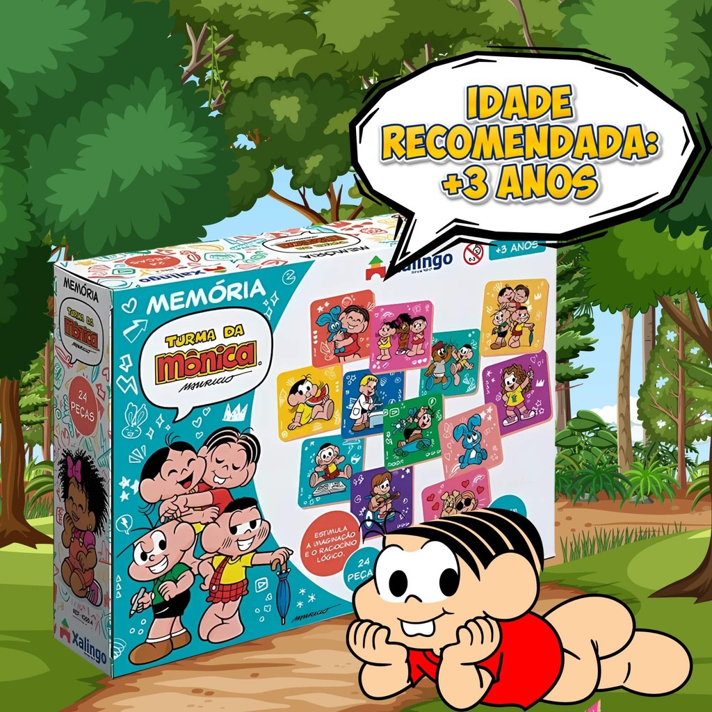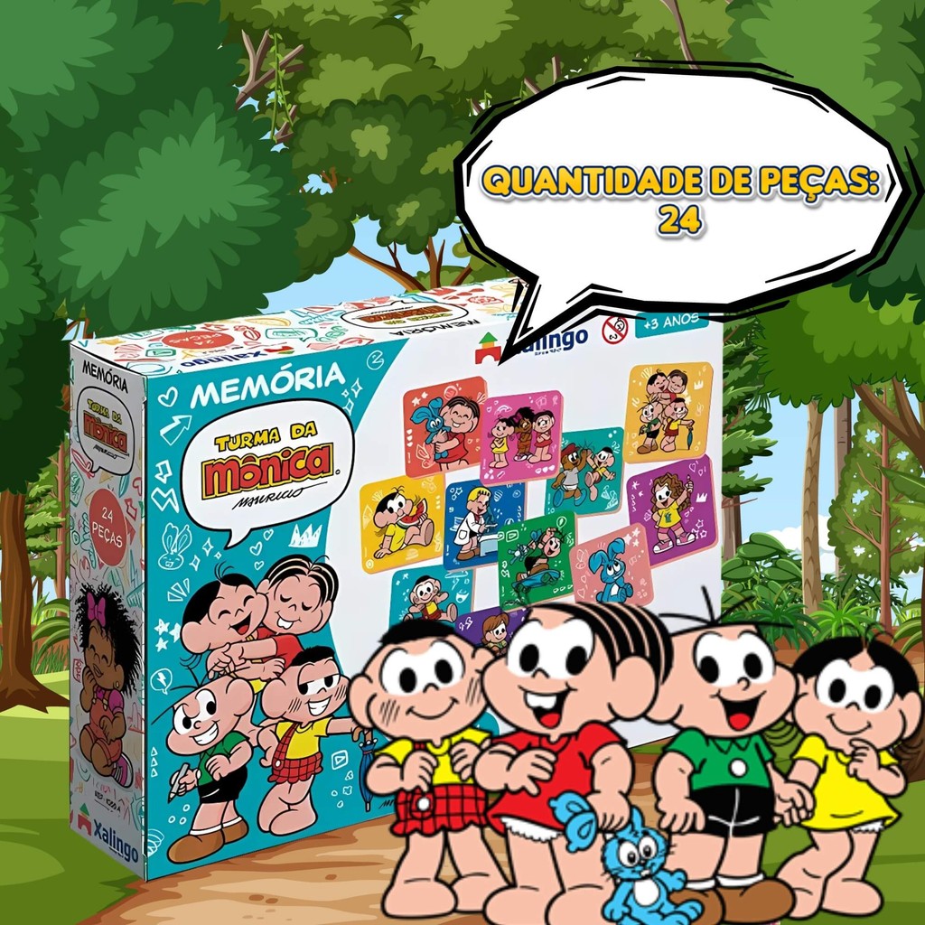 Jogo da Memória Infantil Turma da Mônica com 24 Peças Ilustradas Brinquedo Educativo Xalingo - 10554