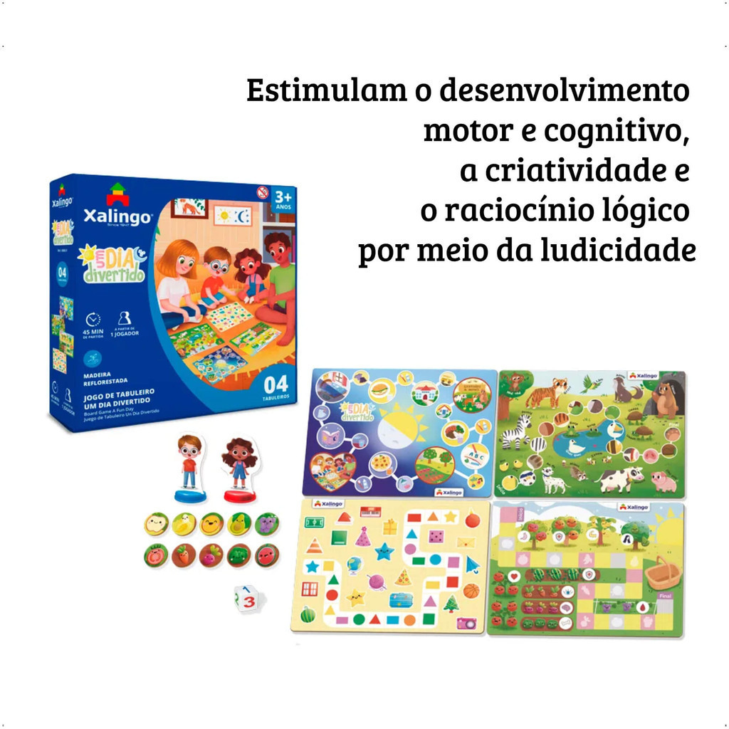Brinquedo Jogo de Tabuleiro Um Dia Divertido A partir de 3 anos de idade Desenvolve a criatividade - Xalingo 60609
