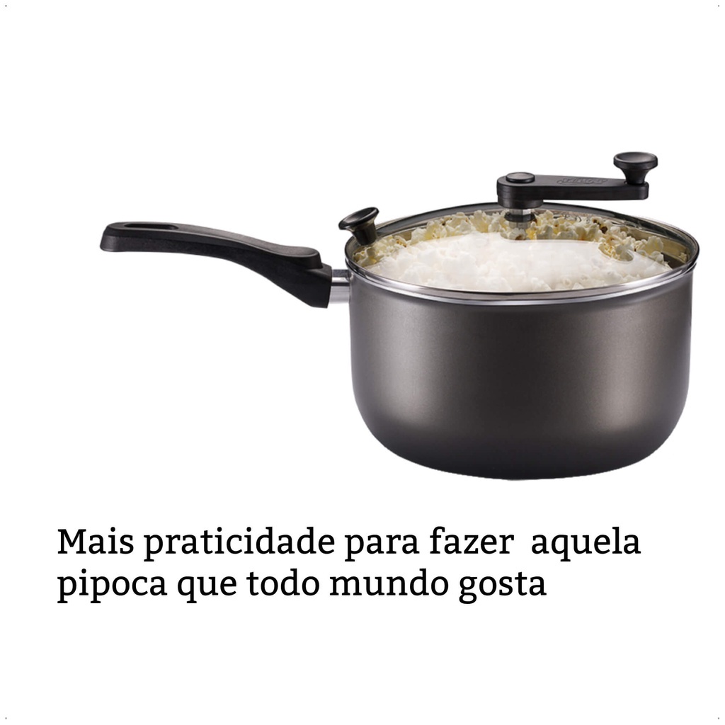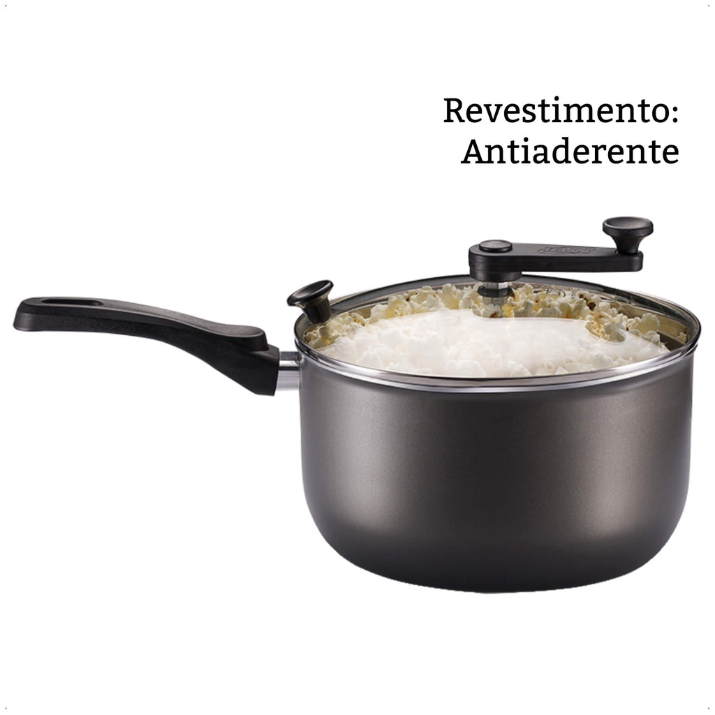 Pipoqueira Antiaderente Grafite Versátil Com Tampa Transparente Número 22 Capacidade 3,6L TVT MTA - 8874