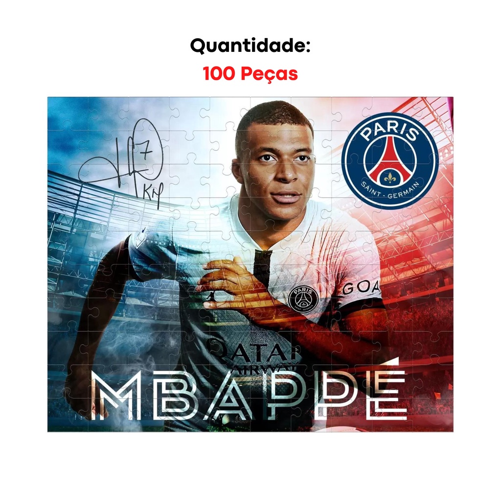 Quebra Cabeça Mbappe 100 Peças Puzzle PSG Mimo Toys Jogo Brinquedo Infantl Adulto Colecionável