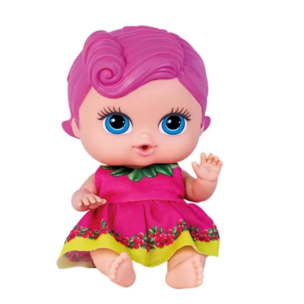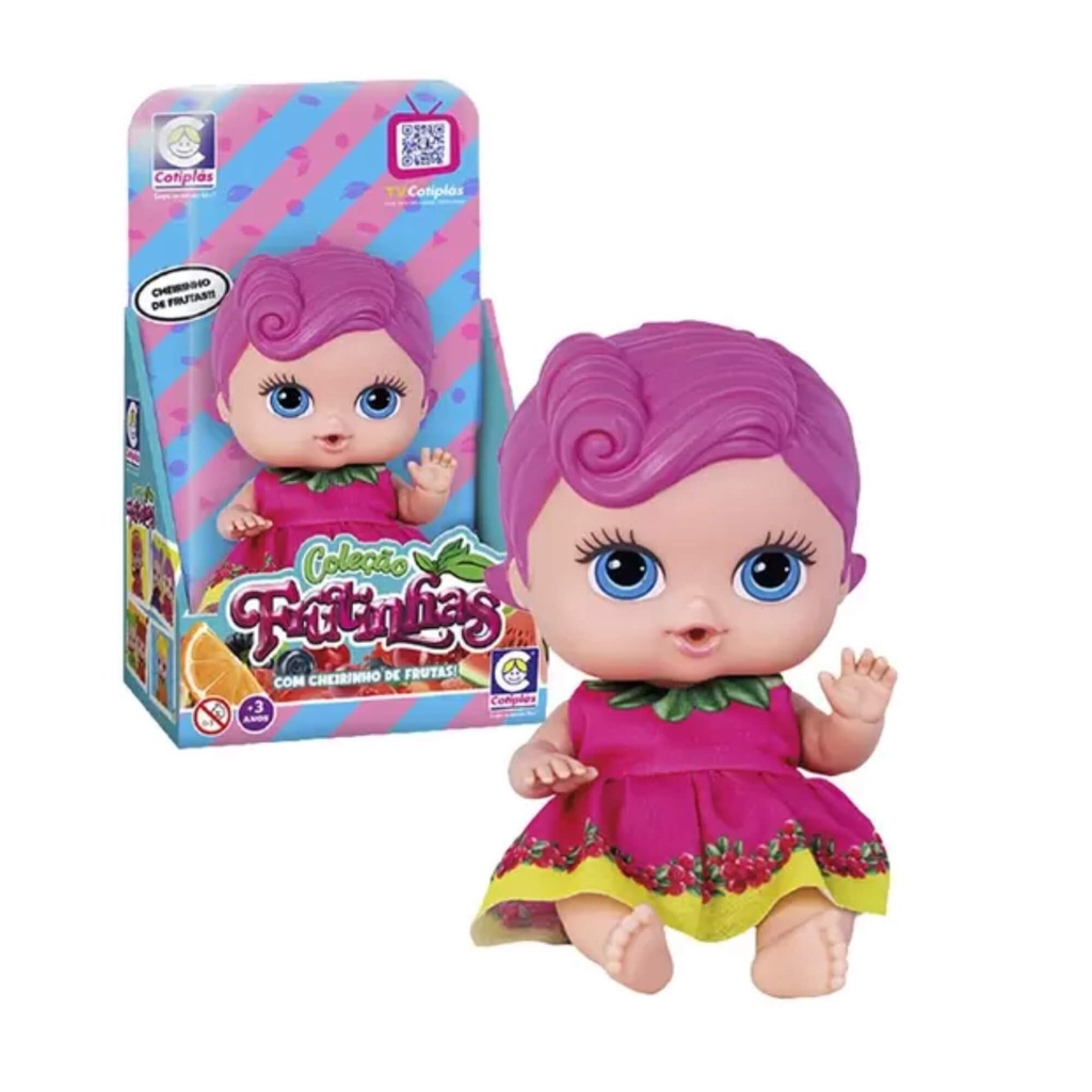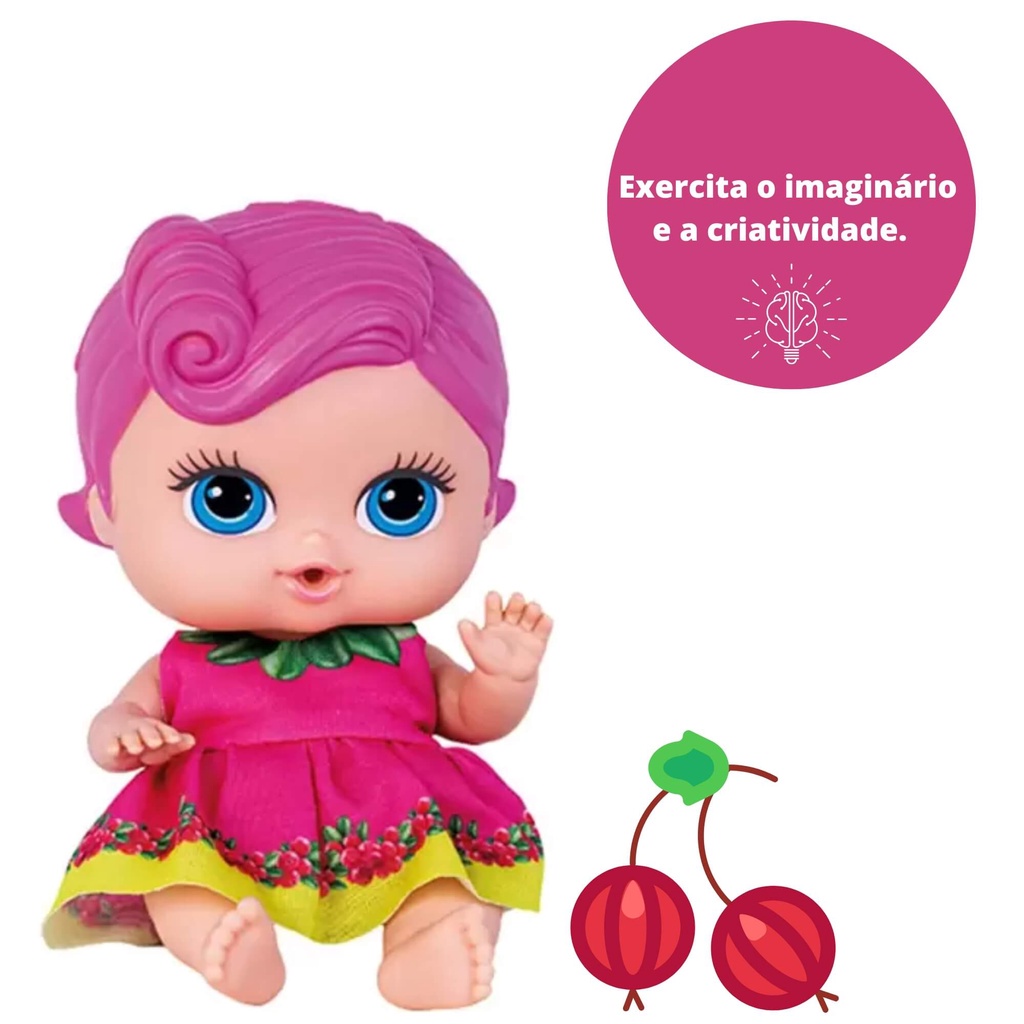 Brinquedo Boneca Coleção Frutinhas Groselha com Cheirinho de Frutas 19cm em Plástico Vinil Rosa Cotiplas - 2511