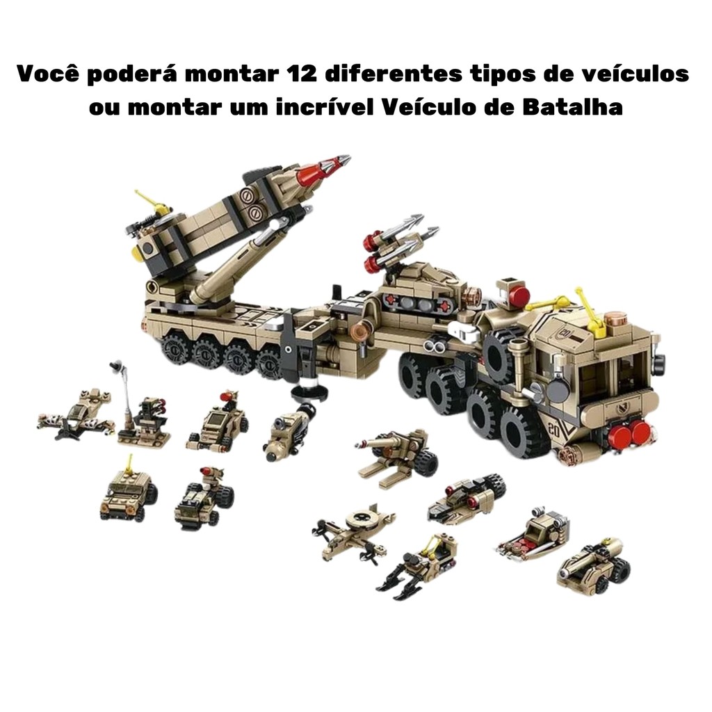 Brinquedo Blocos de Montar Cubic City 12 em 1 Patriot Exército 555 Peças Multikids - BR1096