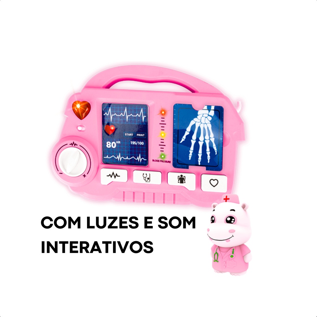 Brinquedo Infantil Kit Médico Raio X Rosa com Fichas Estetoscópio Acessórios Faz de Conta - Fenix DRX-810R