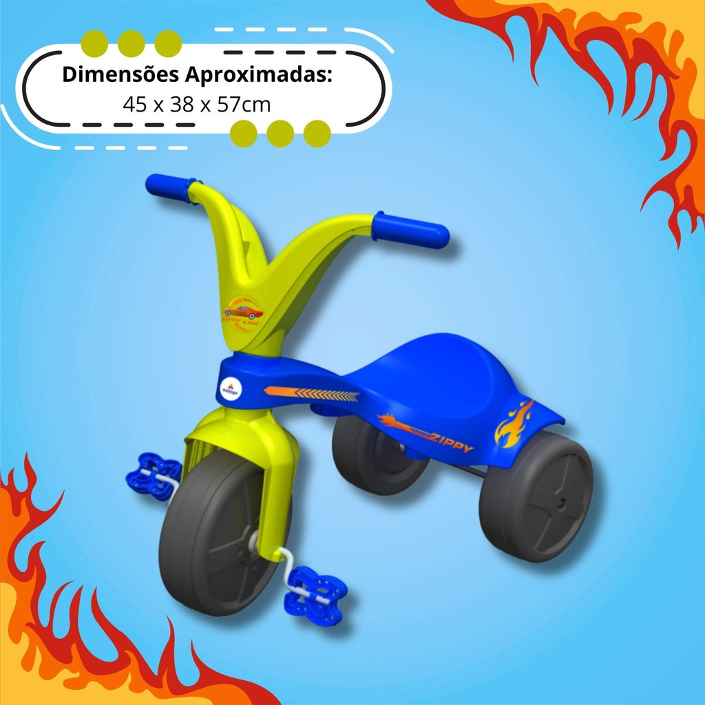 Triciclo Infantil Zippy Car Azul Xalingo Velotrol Criança Esporte Diversão Bebê Patinete