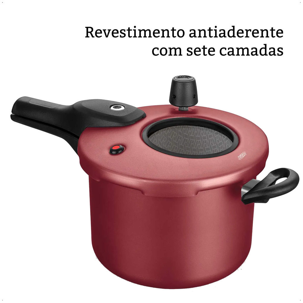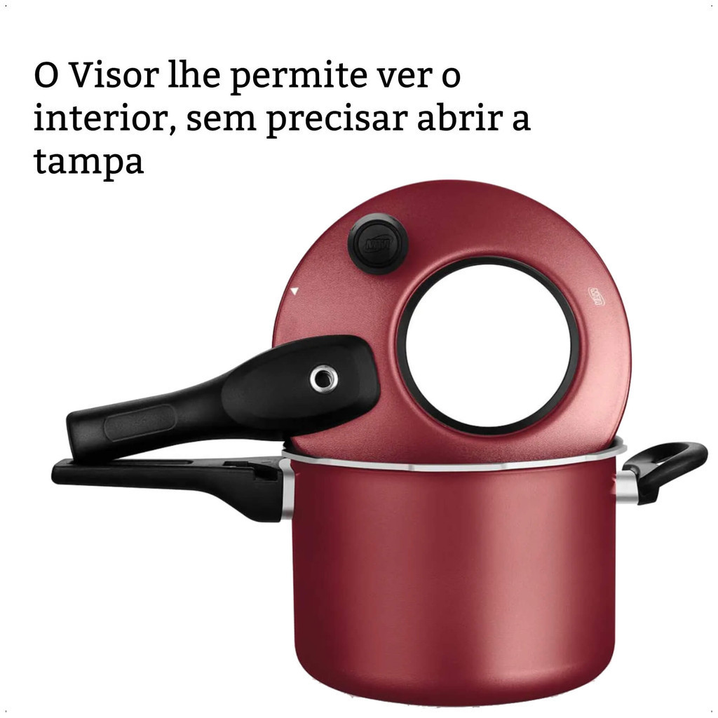 Panela De Pressão Numero 20 4,5L Antiaderente Cereja Com Visor na Tampa Fechamento Externo MTA 6601