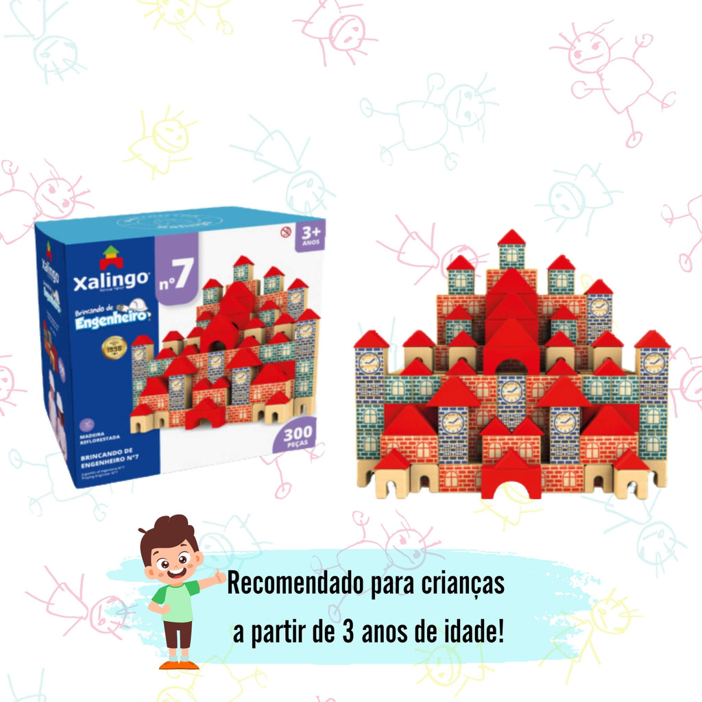 Brincando de Engenheiro N° 7 Blocos de Montar 300 pcs Xalingo Brinquedo Jogo Educativo Infantil