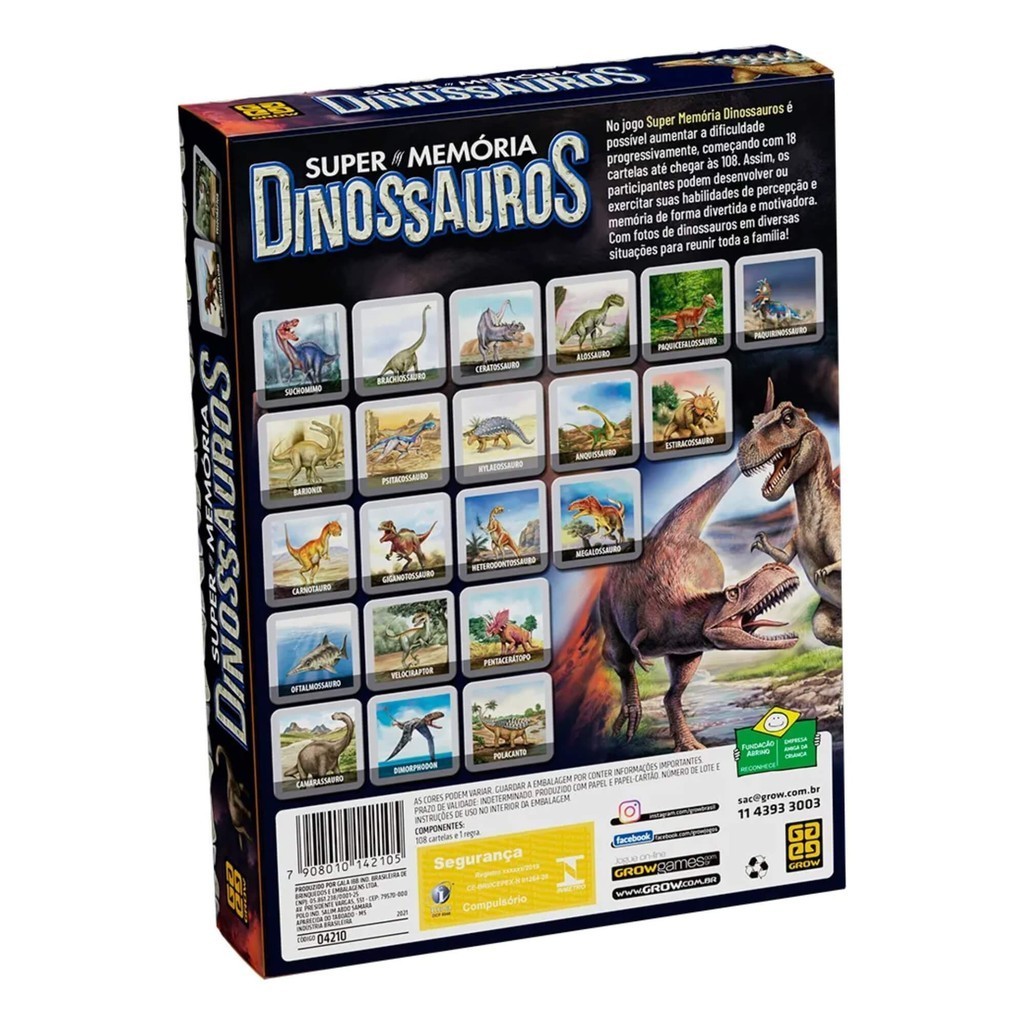 Brinquedo Jogo de Cartas Supermemória Dinossauros Grow - 04210