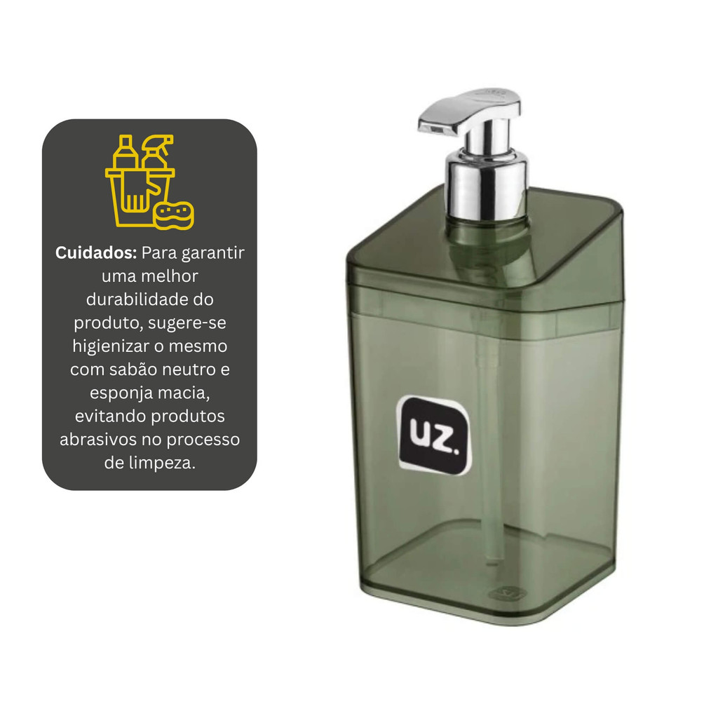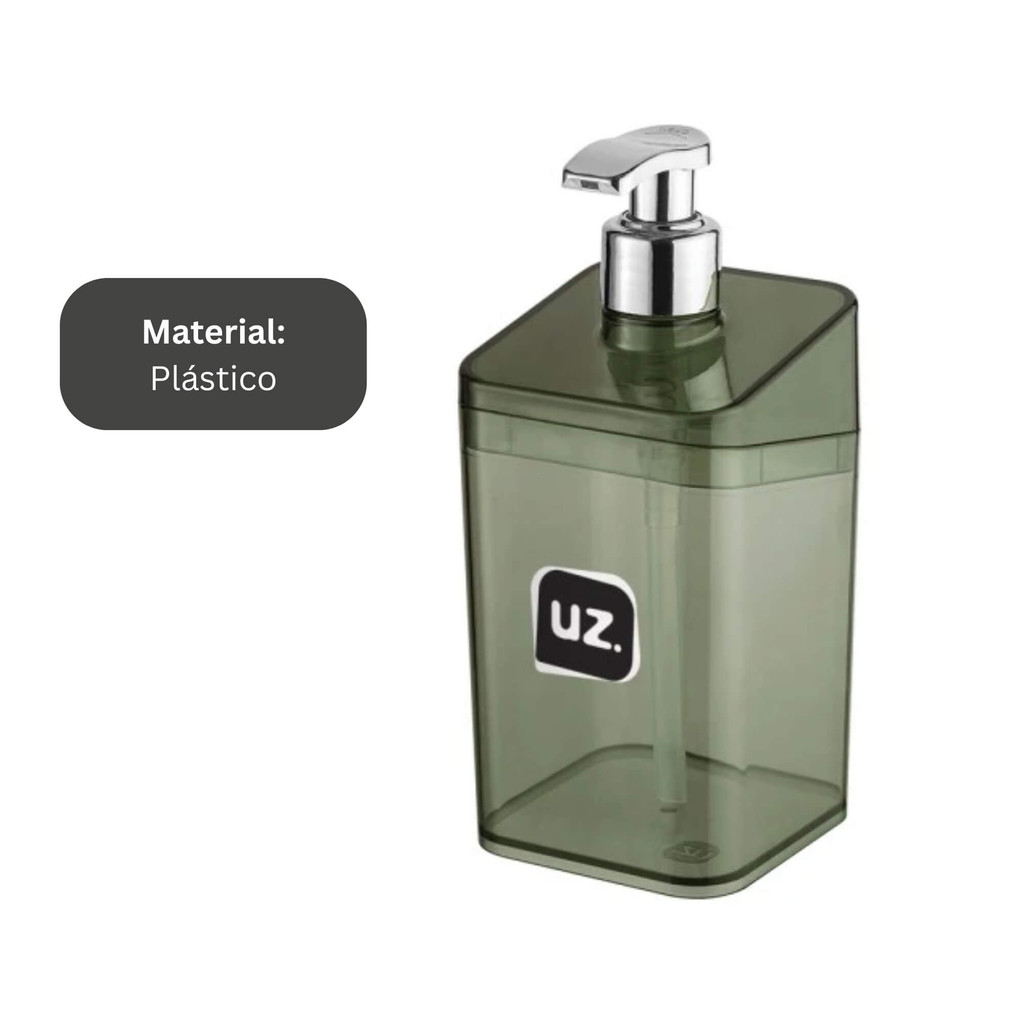 Porta Sabonete Líquido Slim Translúcido Preto UZ Utilidades 350ml Utensílios Banheiro Pia Casa