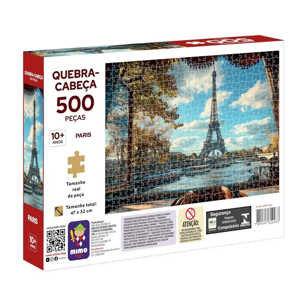 Quebra-Cabeça Puzzle Mundo em Peças Paris 500 peças Mimo Toys - 2645