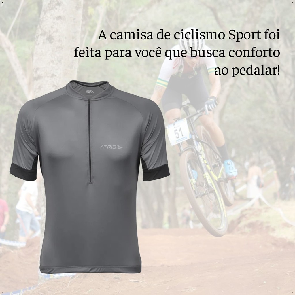 VAR Camisa Ciclismo Masculina M/G Cinza Chumbo UV30+ Dryfit Sport Corrida Treino Academia Musculação Atrio
