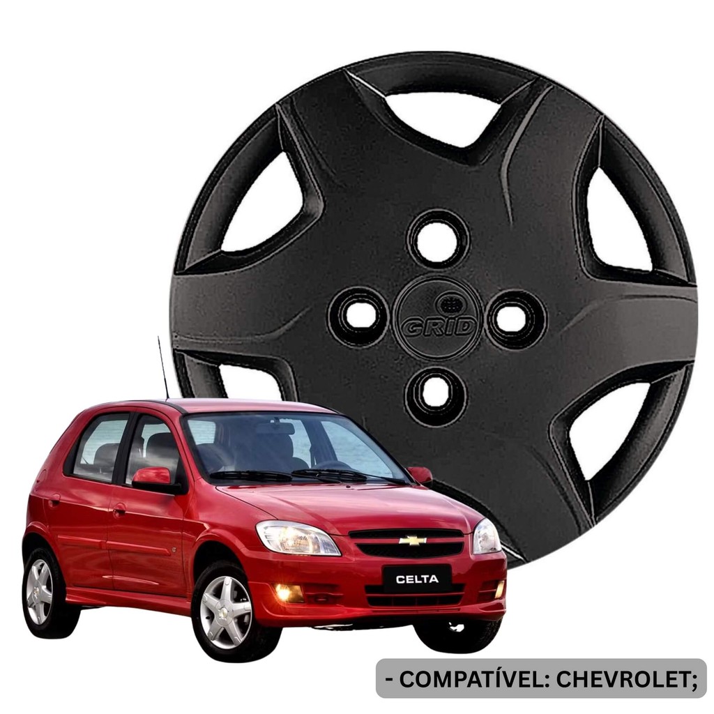 Calota Aro 13" Preto Fosco Modelo Celta 2012 a 2015 Jogo c/4 Calotas Grid - 042CB-POF-E