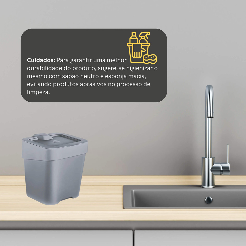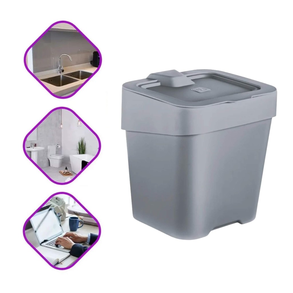 Lixeira de Pia Slim 2,5 Litros Cinza Titânio UZ Utilidades Utensílios Domésticos Cozinha Banheiro