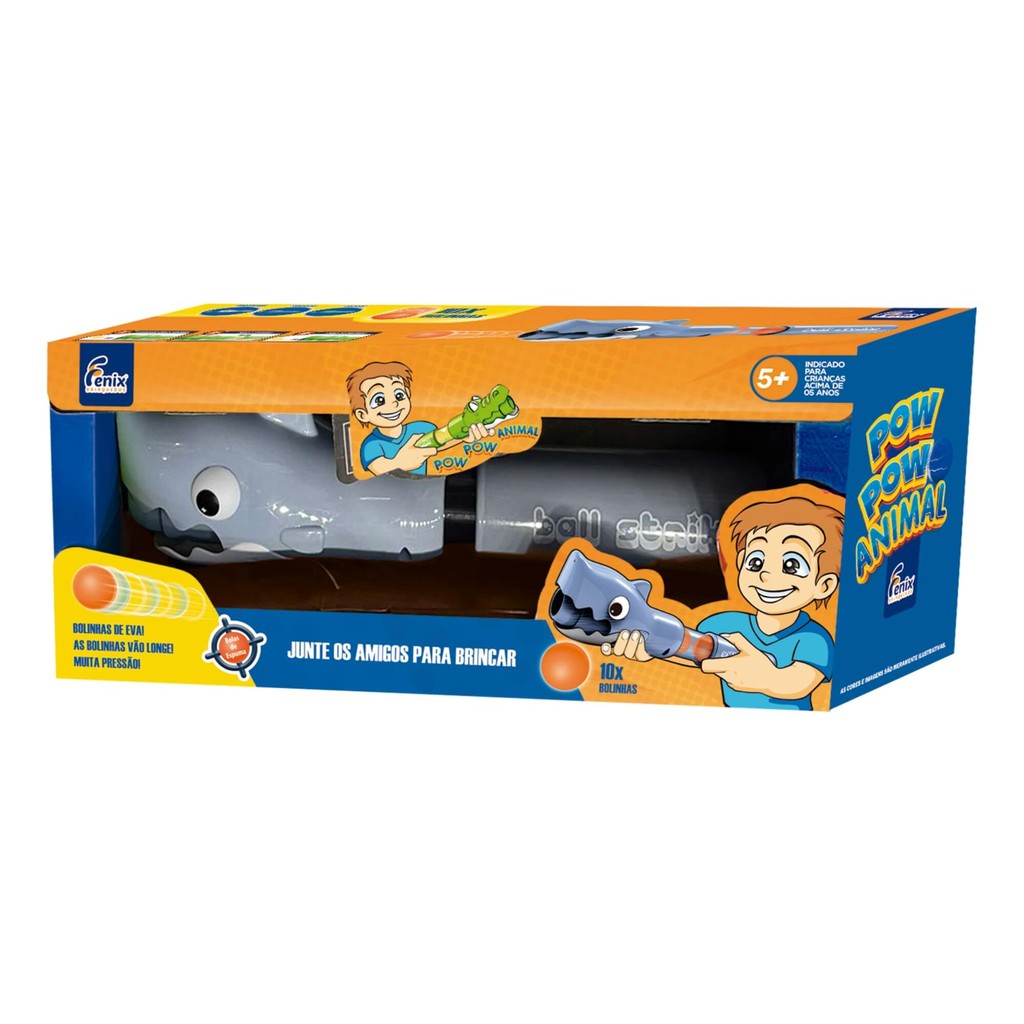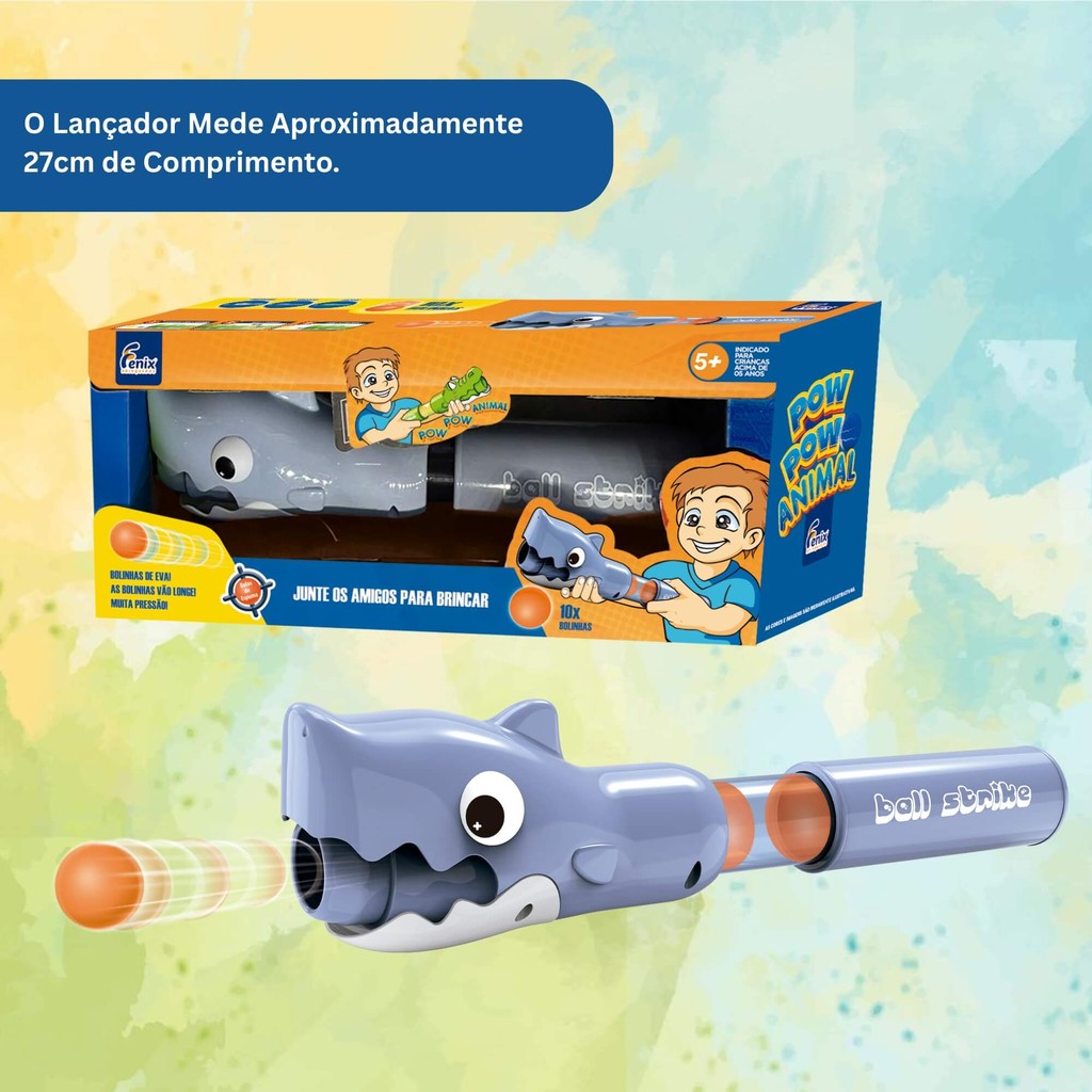 Lançador de Bolinhas Infantil Pow Pow Tubarão com 10 Bolinhas EVA Fenix - PPA-499T