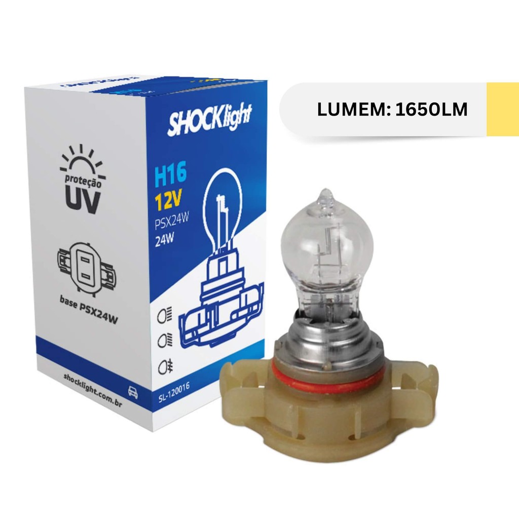 Lâmpada Automotiva Halógena Standart H16 12V 24W PSX24W Shocklight SL-120016 Carro