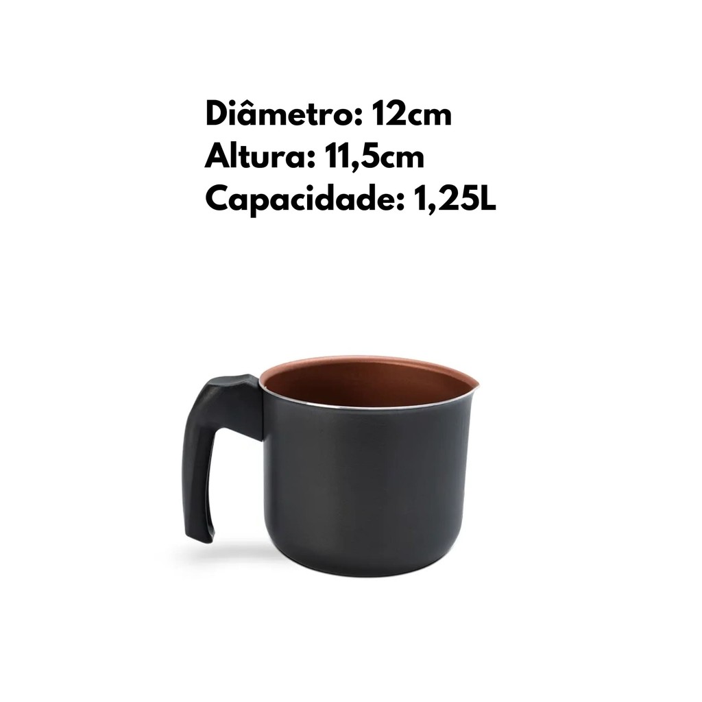Fervedor Leiteira Panela 1,25L Revestimento Pro-flon Antiaderente Cinza Range Linha Topázio Brinox