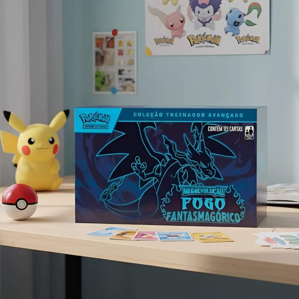 Box Coleção Pokemon Treinador Avançado TCG Mega Evolução Fogo Fantasmagórico Copag - 35682