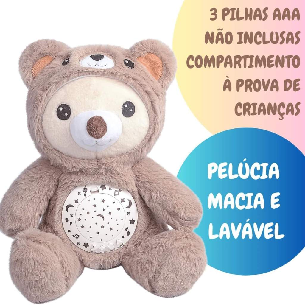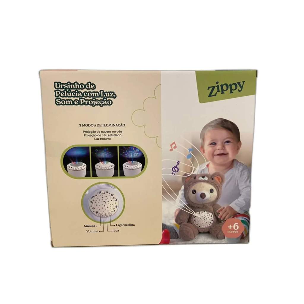 Pelúcia Musical Bebê 3 em 1 Luz Som Projeção Estrelas Sensor de Choro Ursinho Zippy Toys - 11124