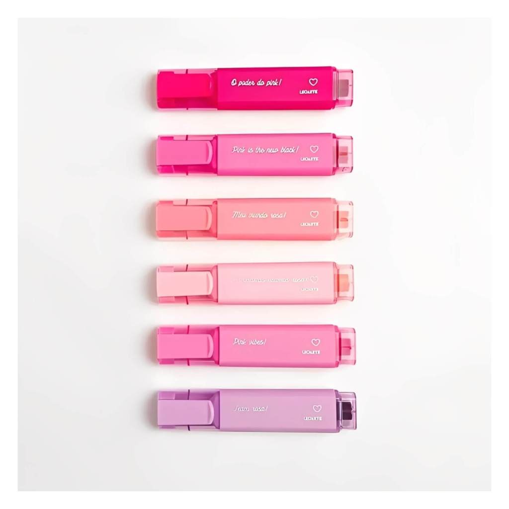 Estojo com 6 Cores de Marca Texto Pink Vibes Leoarte Leonora - 96154