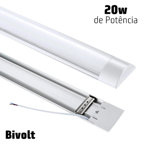 Luminária Slim Led Linear Sobrepor 20w 60cm 6500k Branco Frio Tubular de LED Luminária pra quarto