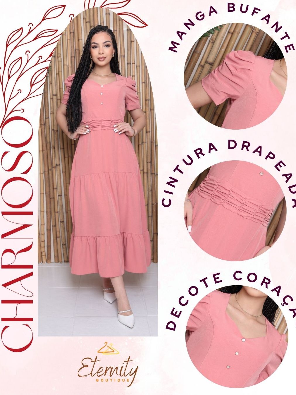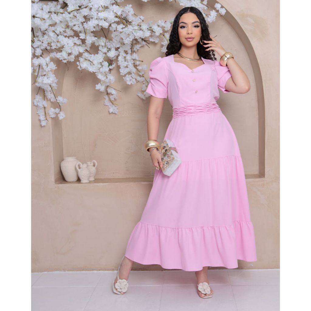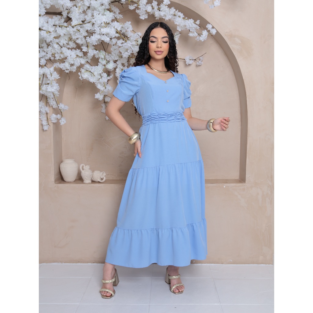 Vestido mídi feminino evangélica com manga princesa com elastex na costas confortável