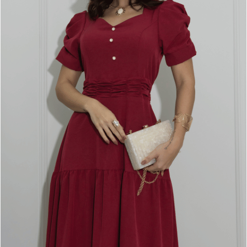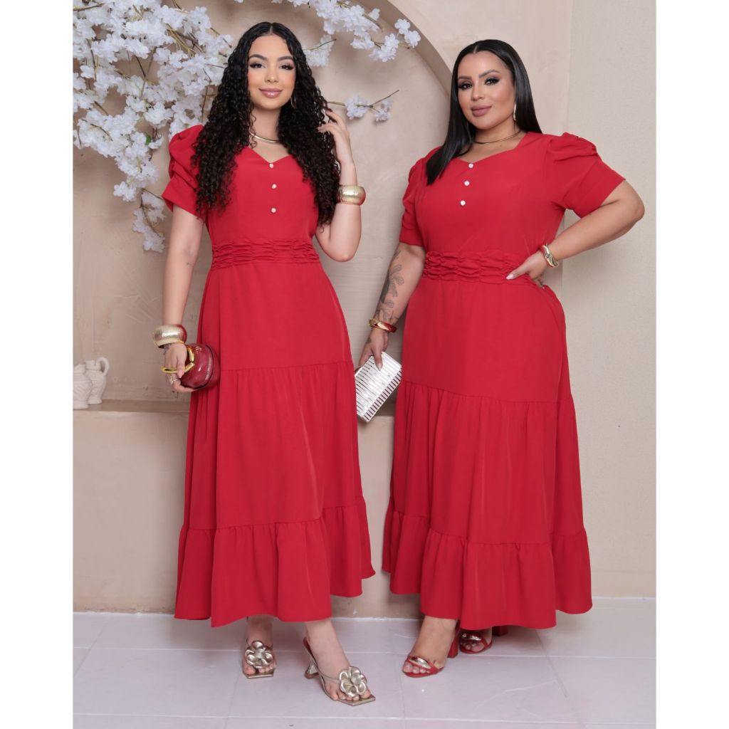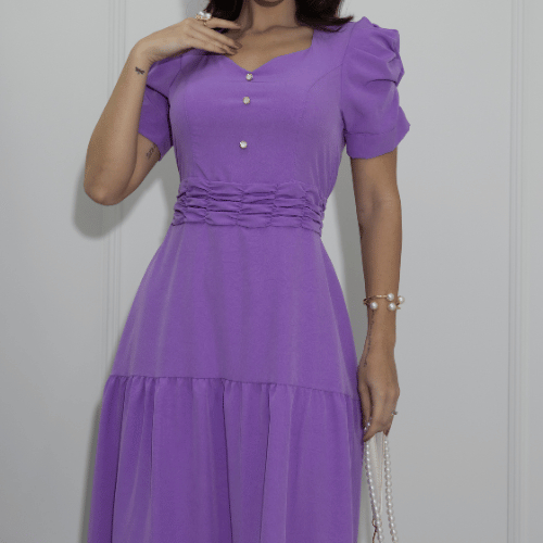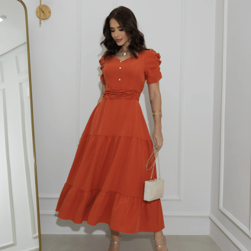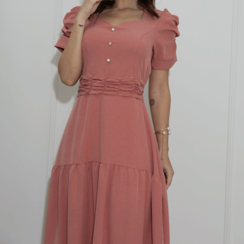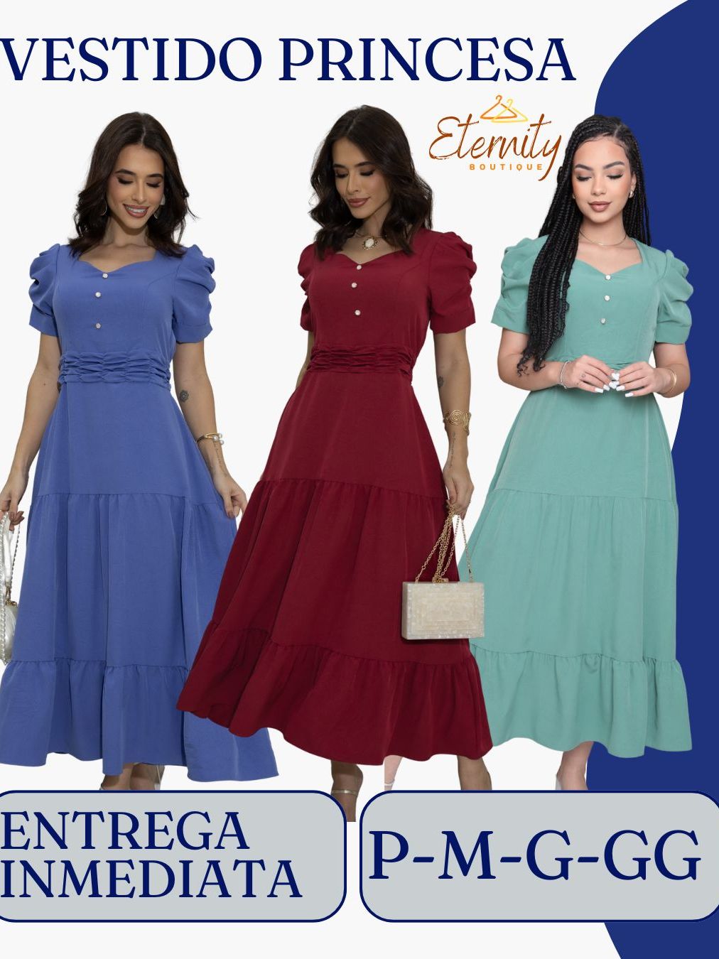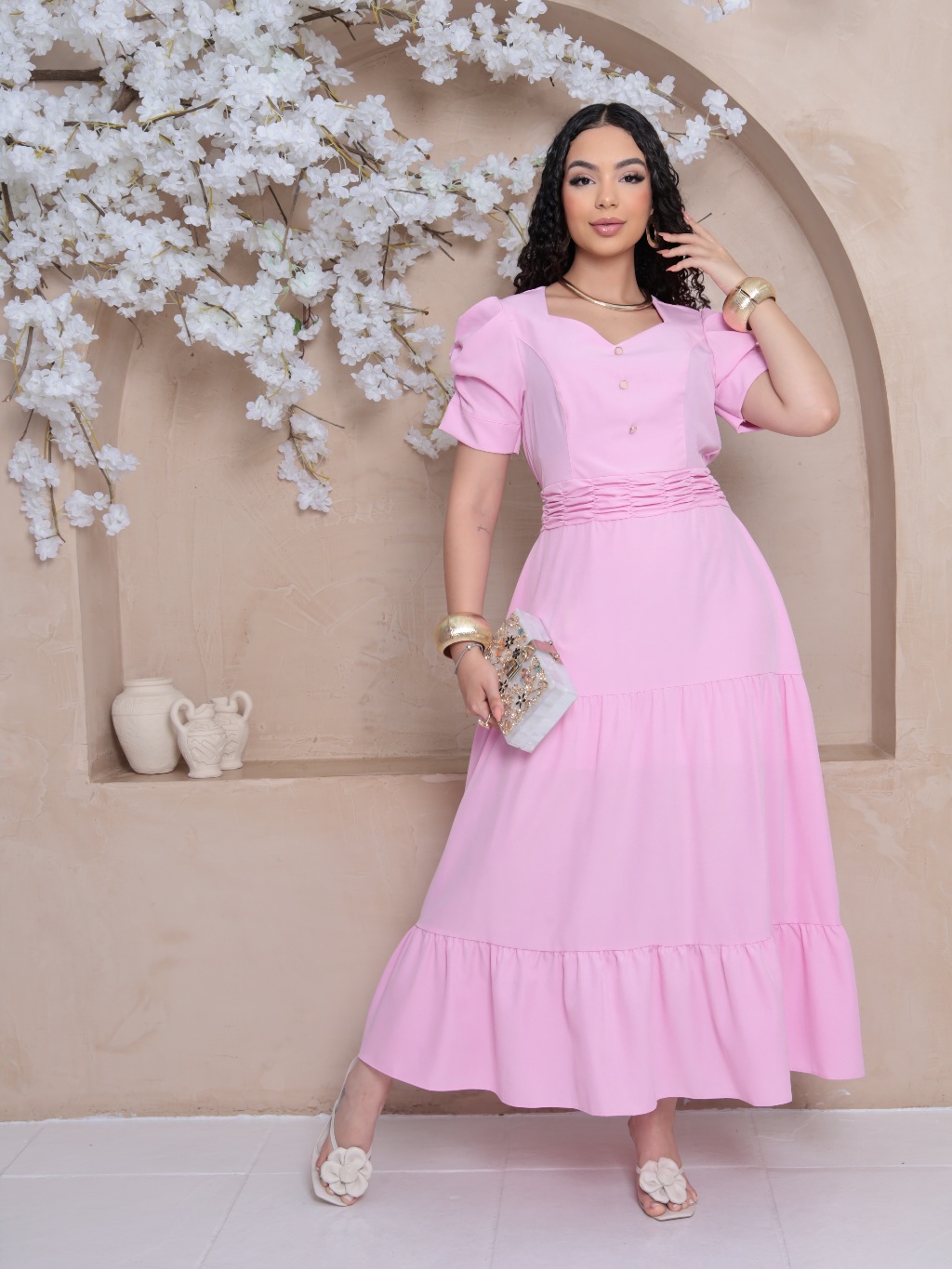 Vestido mídi feminino evangélica com manga princesa com elastex na costas confortável