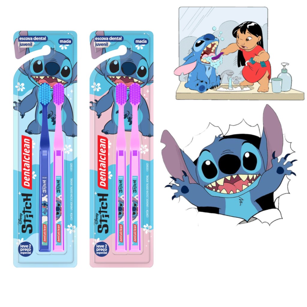 Escova Dental Juvenil Macia - Disney Stitch Leve 2 Pague 1 da Dentalclen