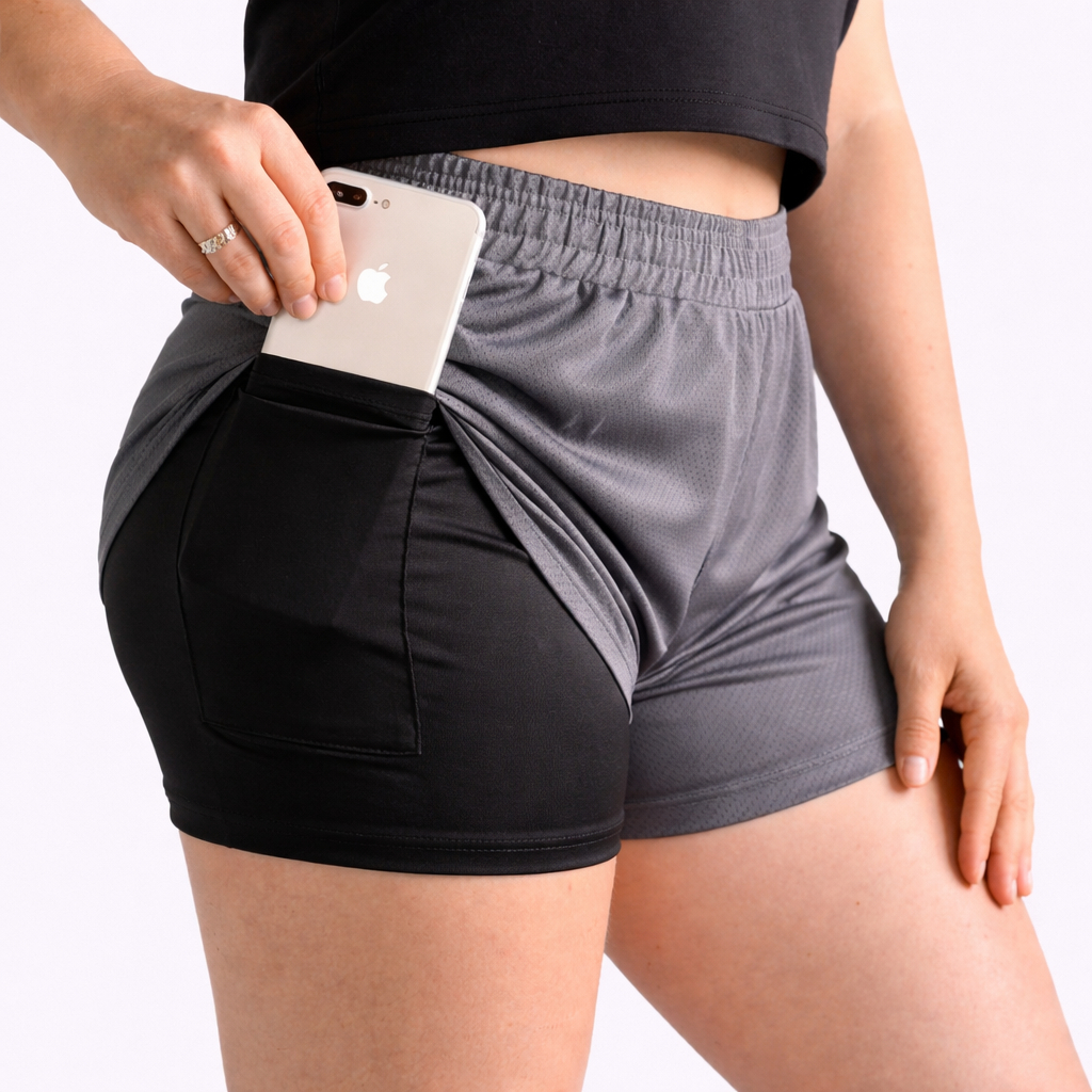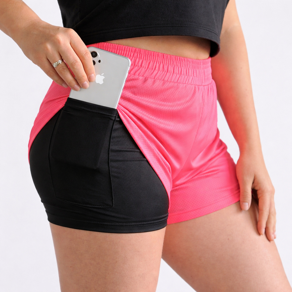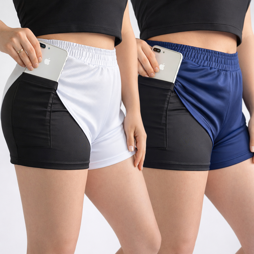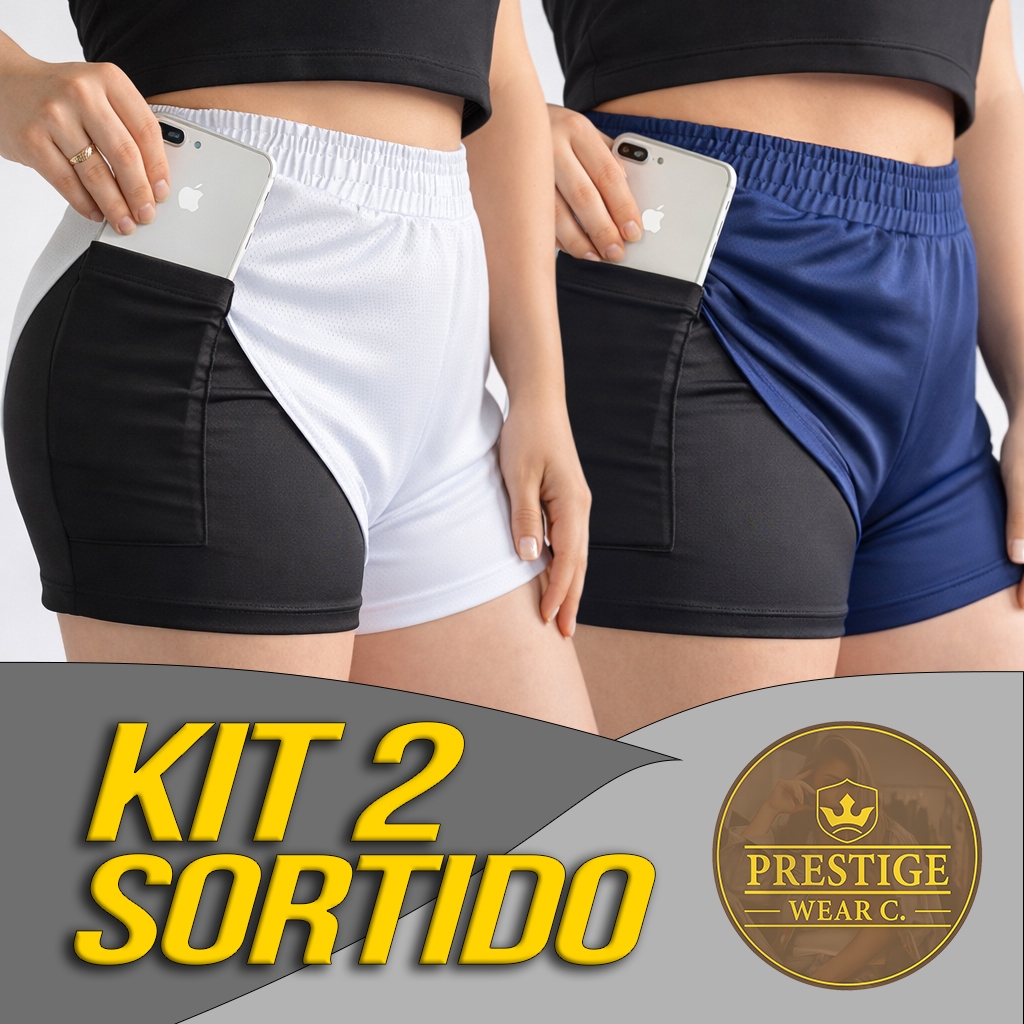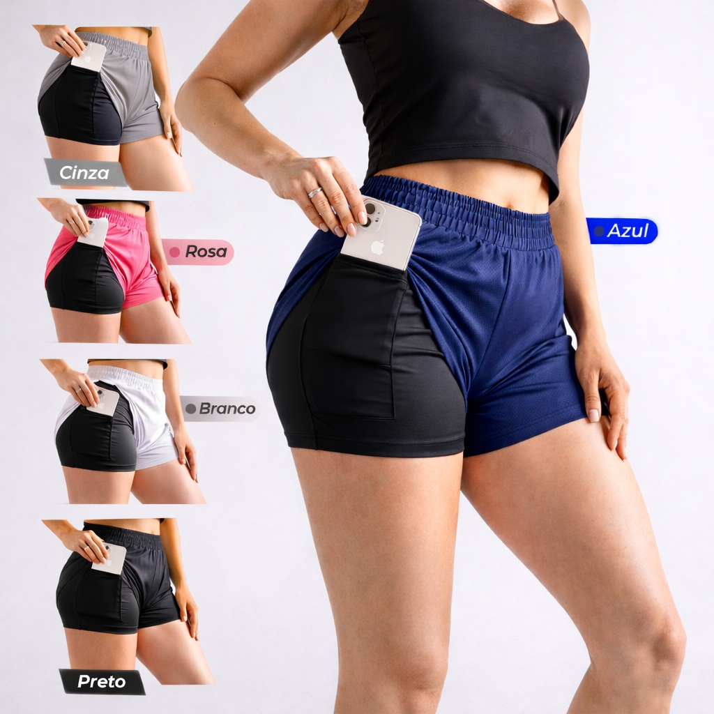 Kit 2 Shorts Feminino Dry Duplo 2 em 1 com Camada de Compressão - Conforto quem pratica Esportes