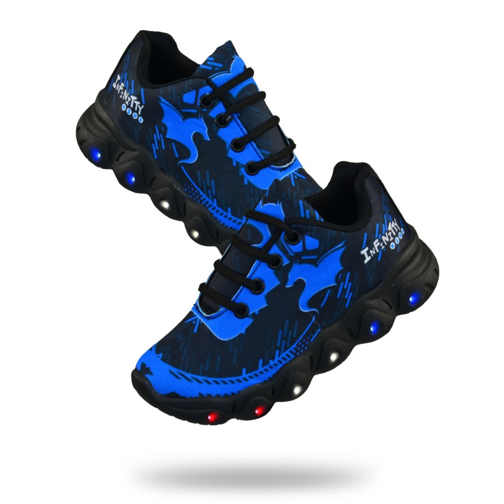 Tênis Led Infantil Casual Meninos 02 Preto Azul Subli Luzinha Lançamento