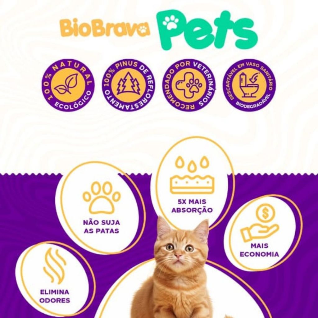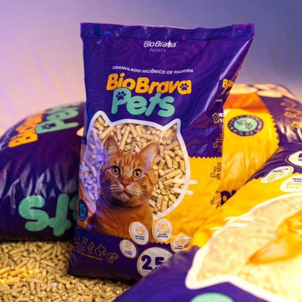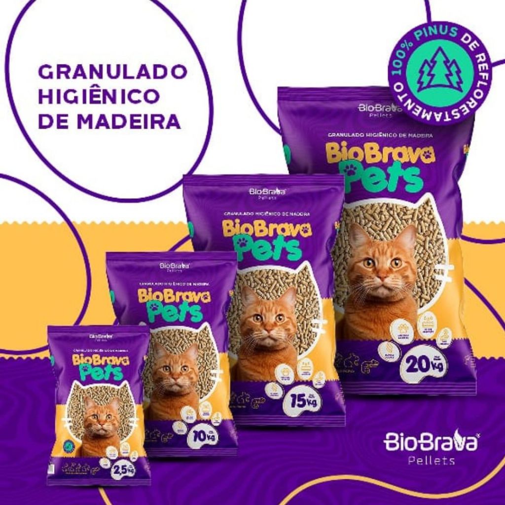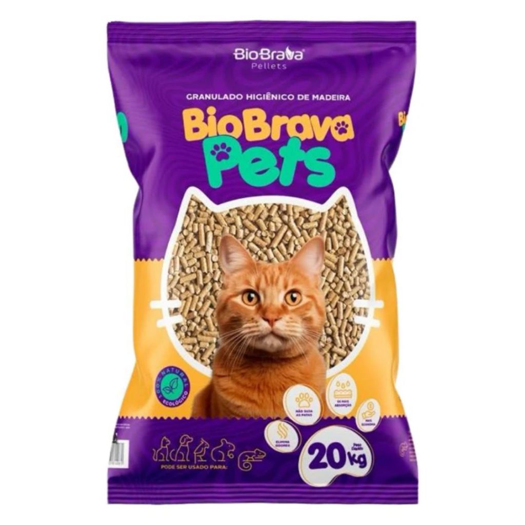 Granulado de Madeira Biodegradável Higiênico 20kg Para Gatos, Aves e Roedores Bio Brava