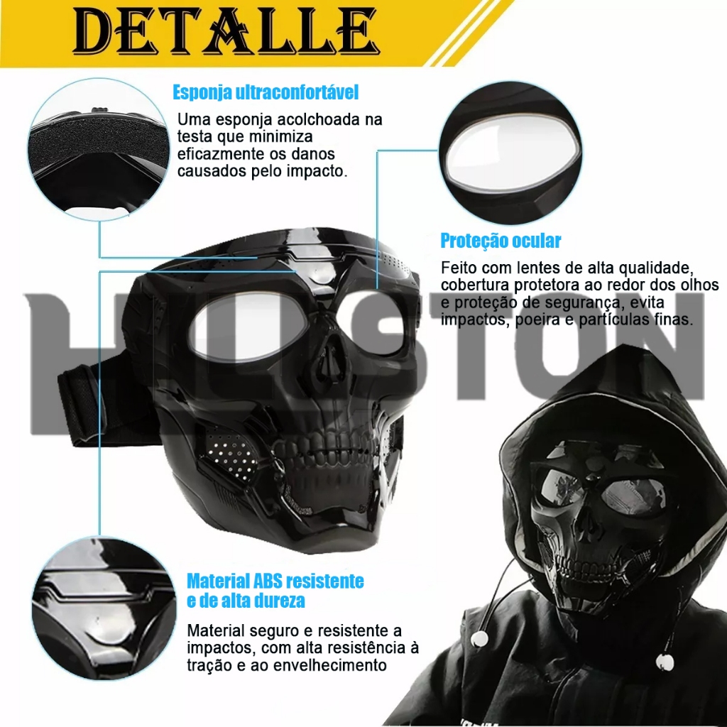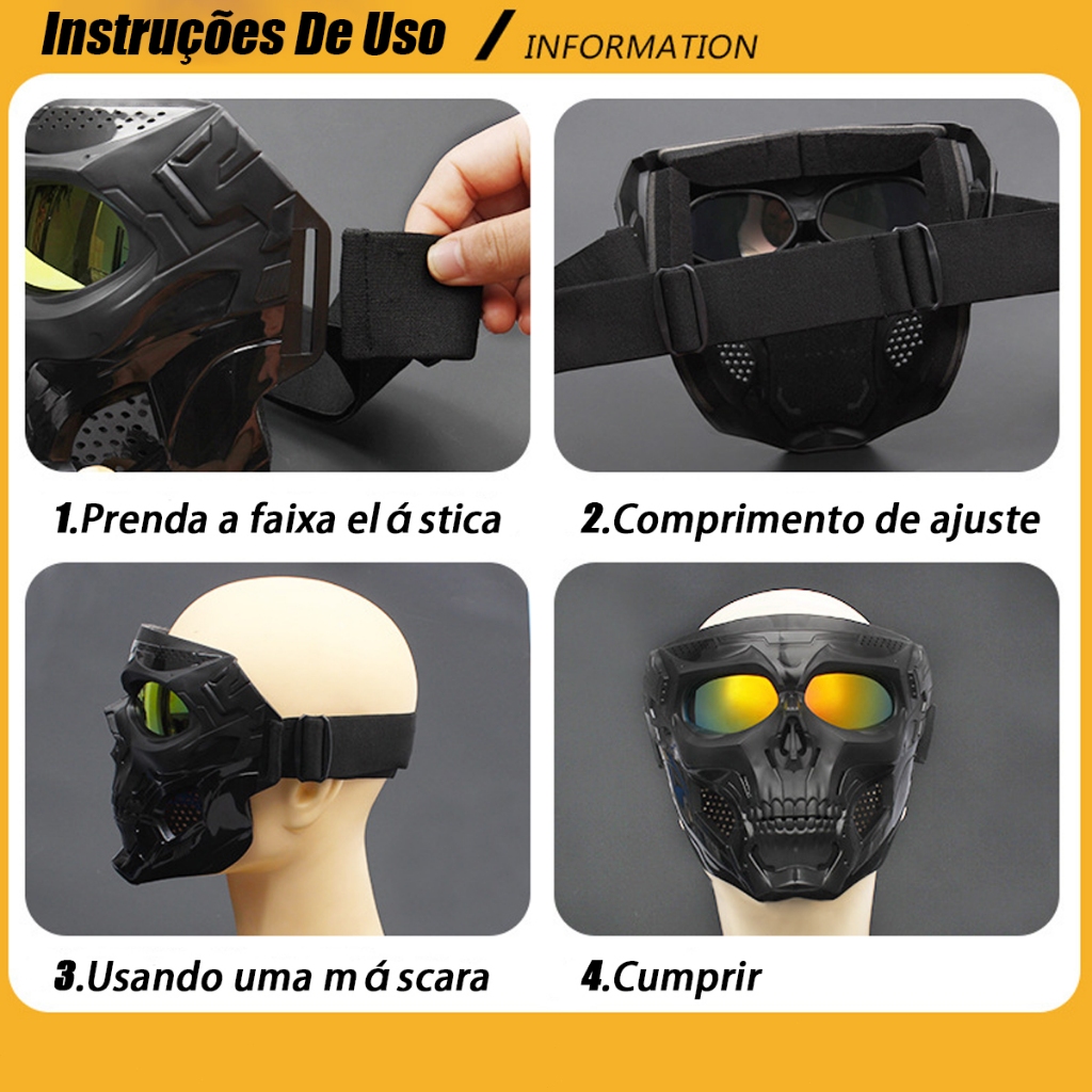 Máscara de caveira Cs Full Facial de proteção para jogos Óculos de proteção para motocross Halloween