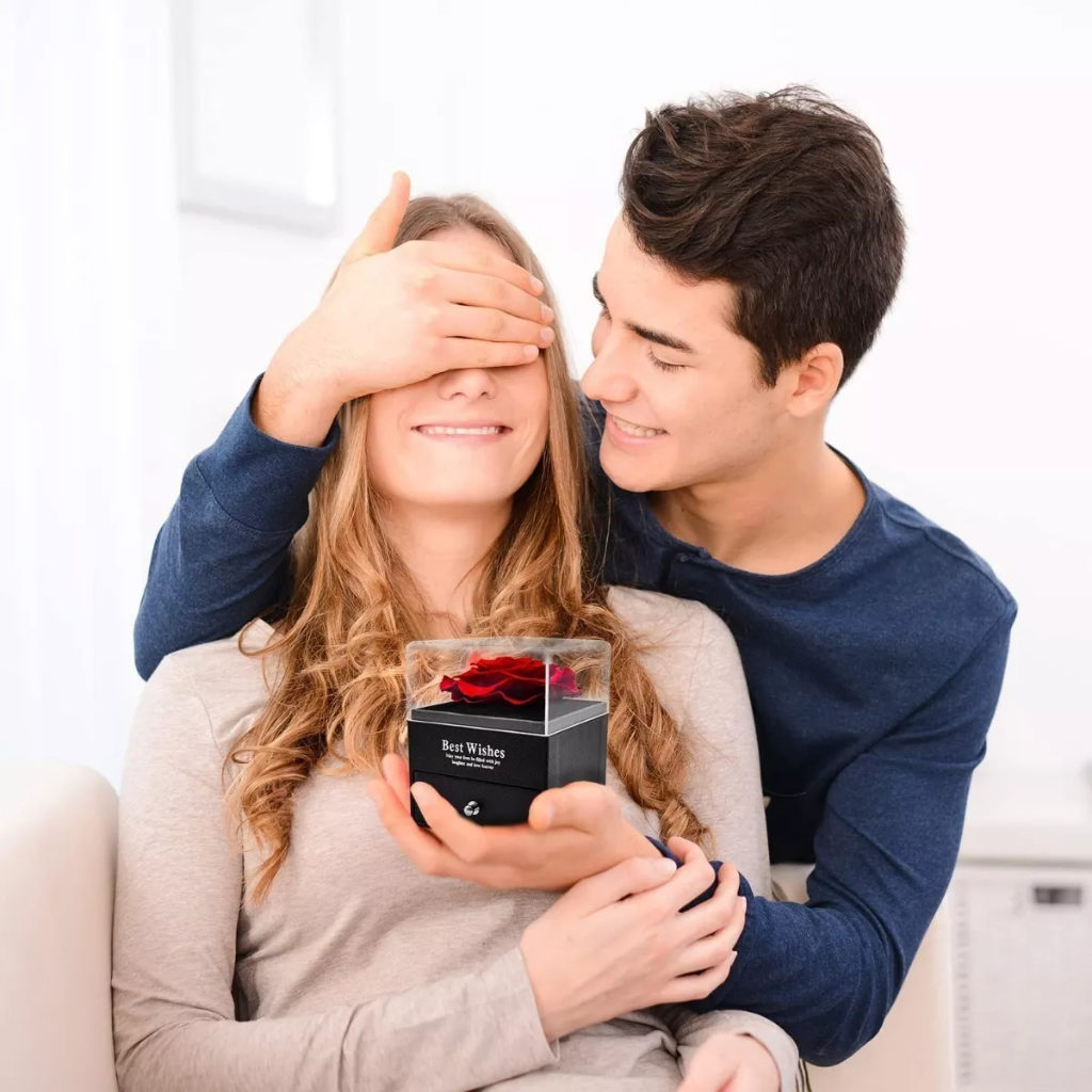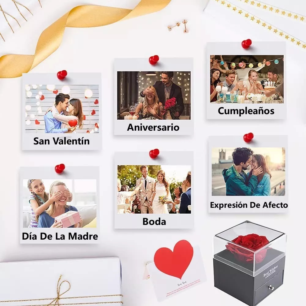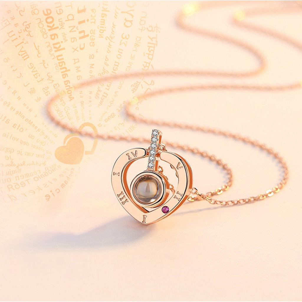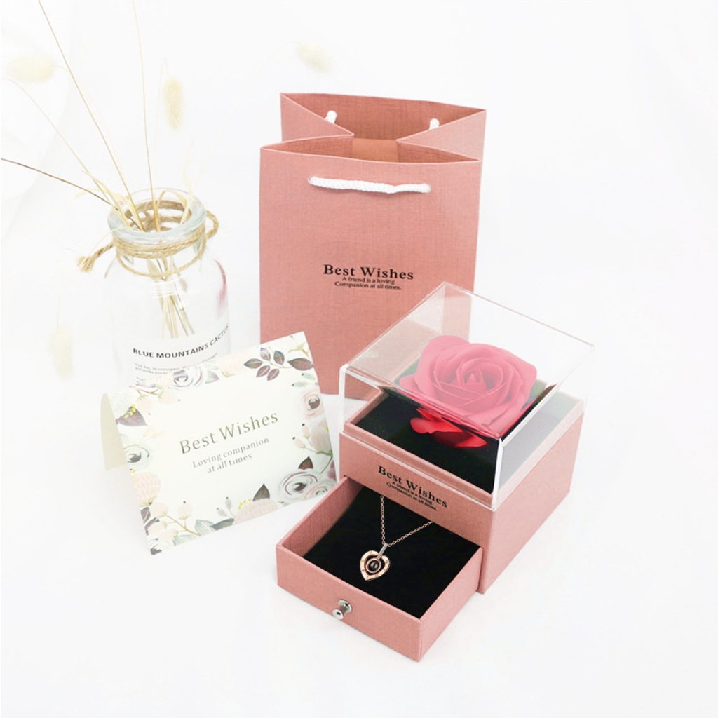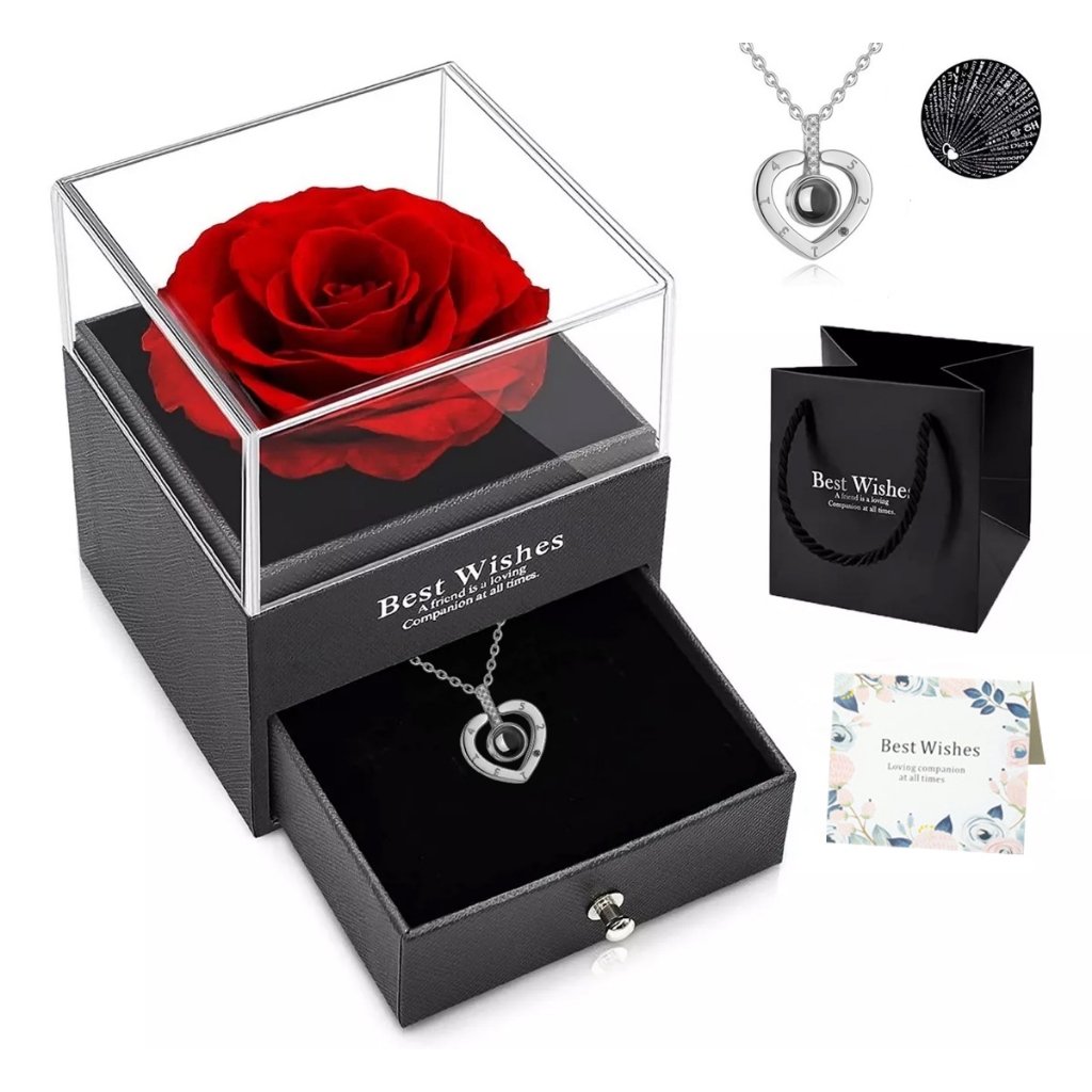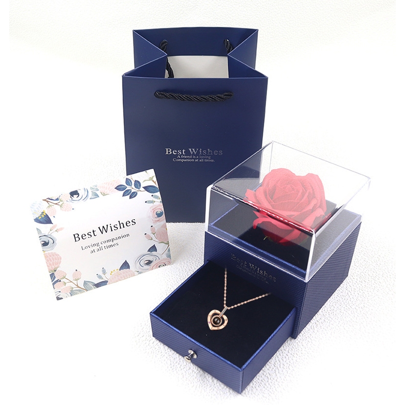 Rosa Eterna Preservada caixa de presente E Eu te amo em 100 idiomas Colar Feminino