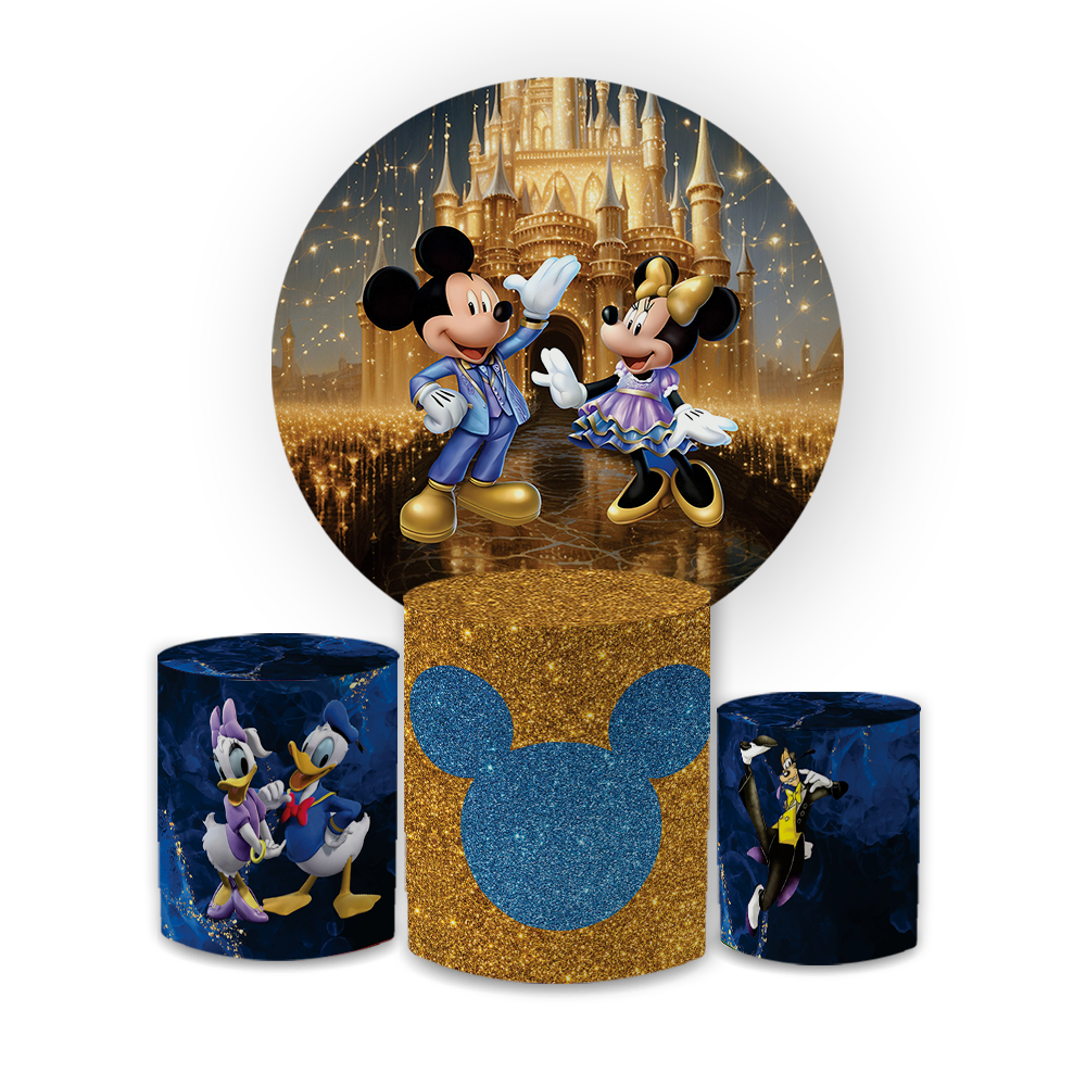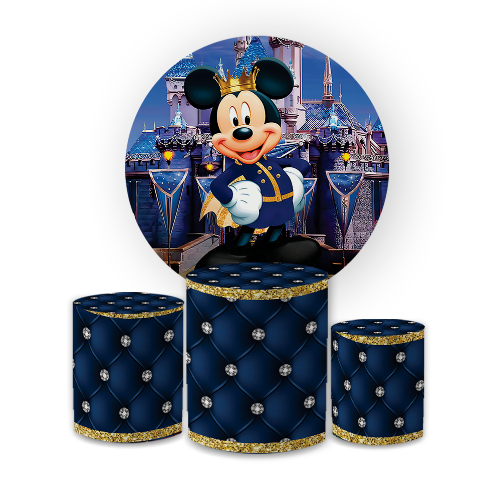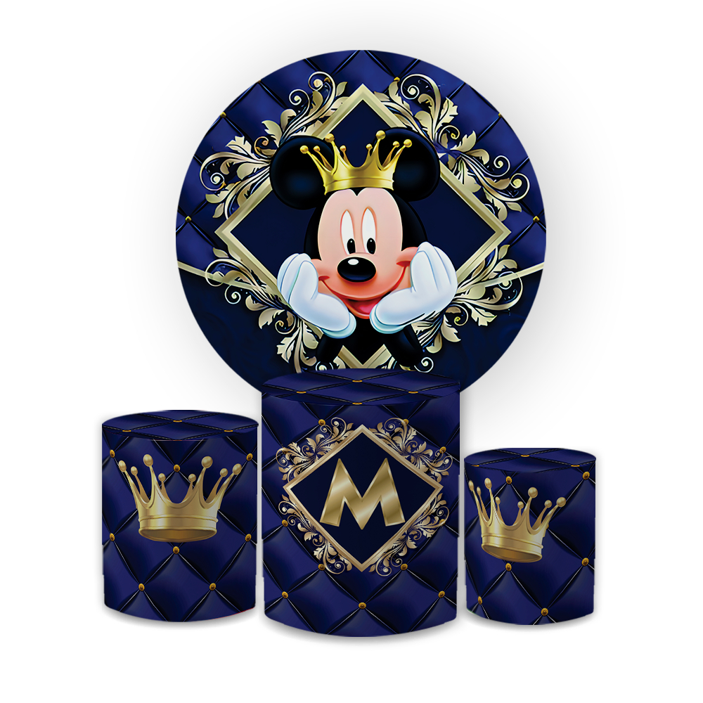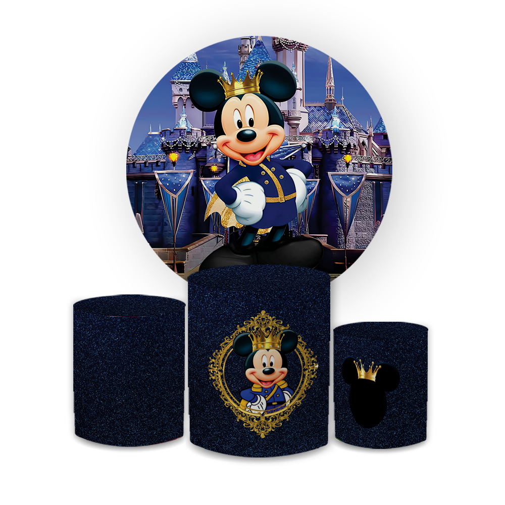 Kit Capa Painel Redondo 1,5 + Trio Cilindros Decoração Aniversário Infantil Mini e Micky Realeza