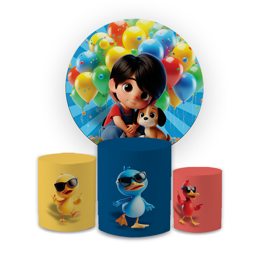 Kit Capa Painel Redondo 1,5 + Trio Cilindros Decoração Aniversário Infantil B3nt0 e T0t0 Patinho