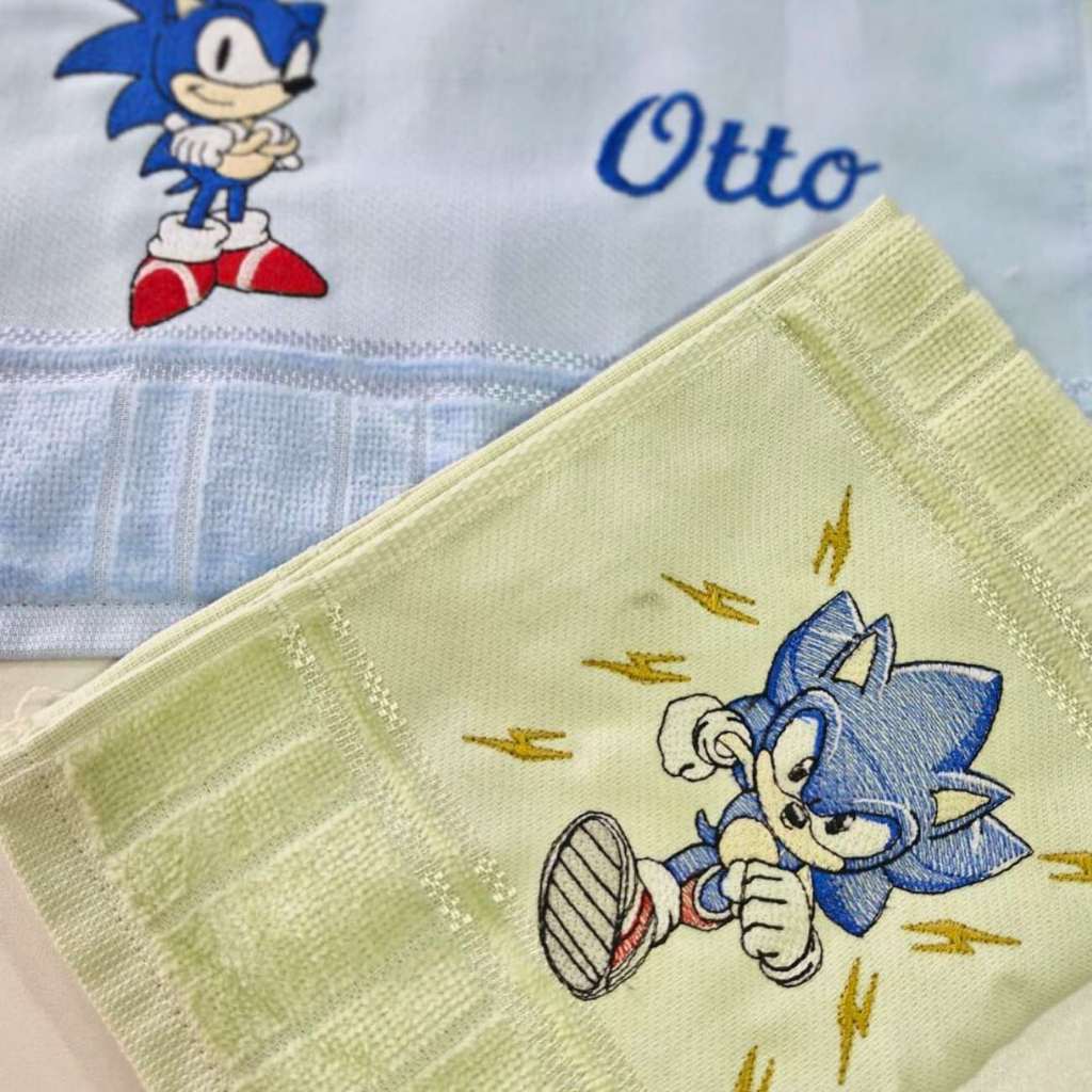 Kit Duas Toalha de Mão Bordado Sonic Personalizada Com Nome