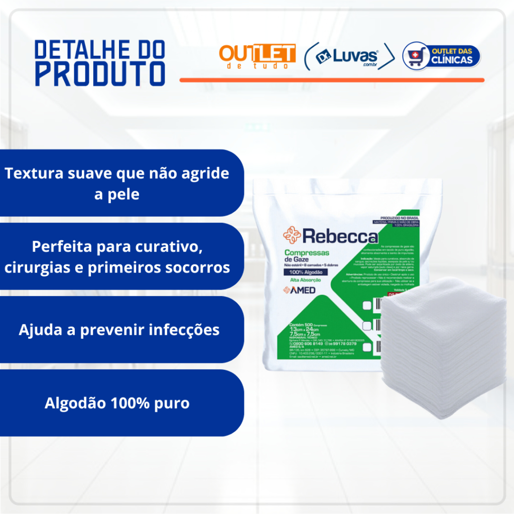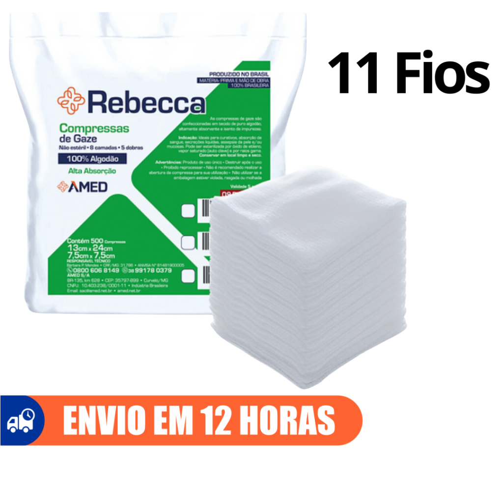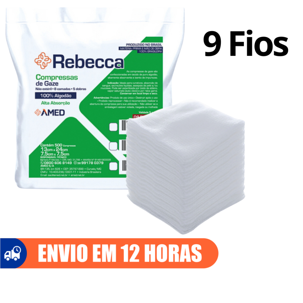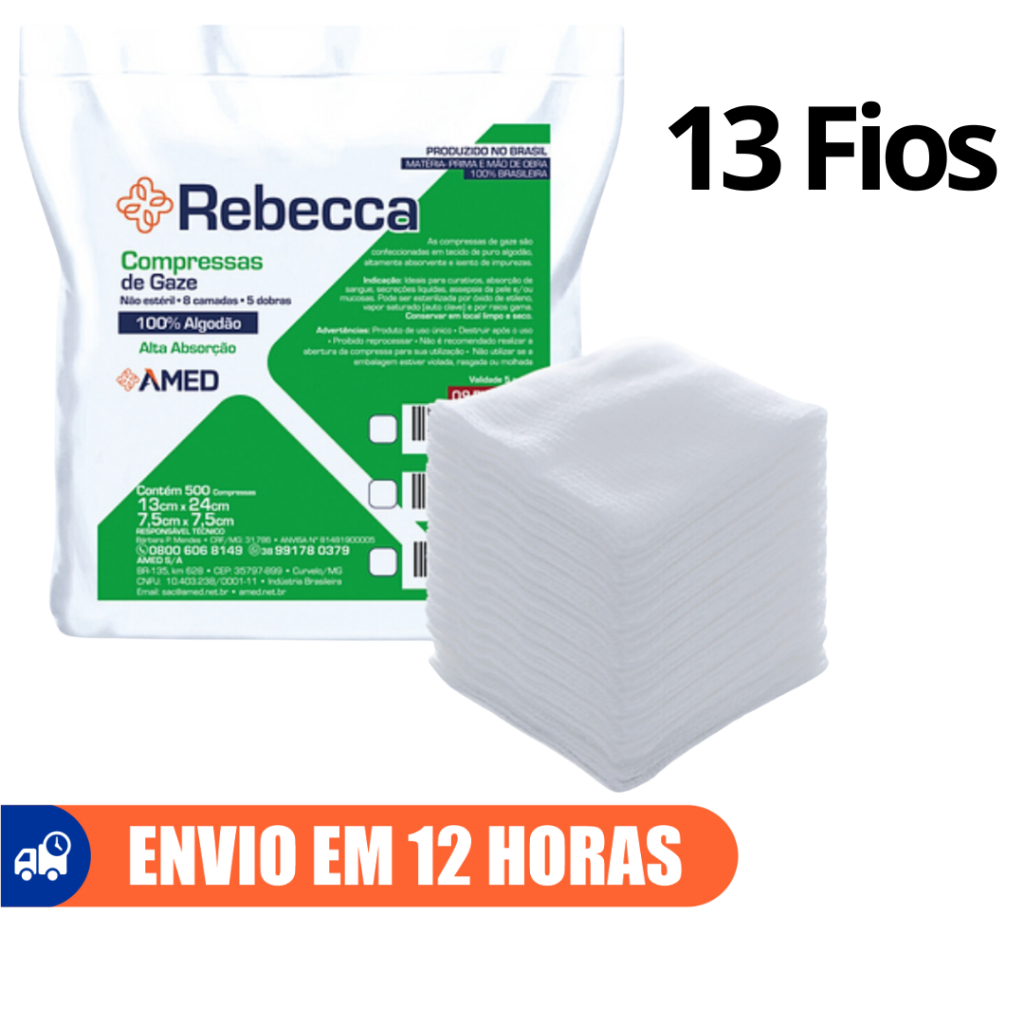 Compressa Gaze Rebecca 7,5x7,5cm 9 11 13 Fios 500un Amed