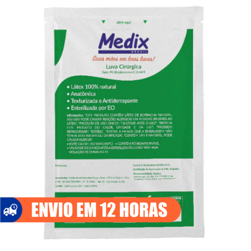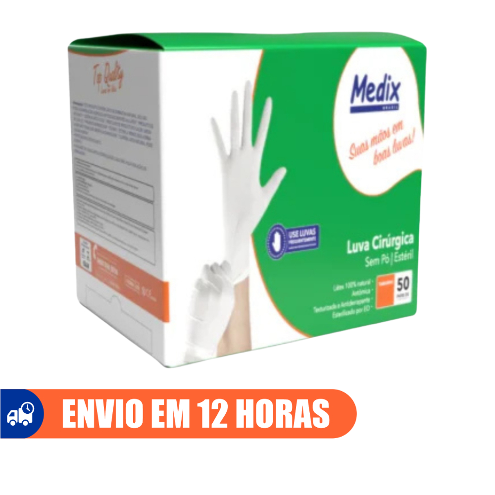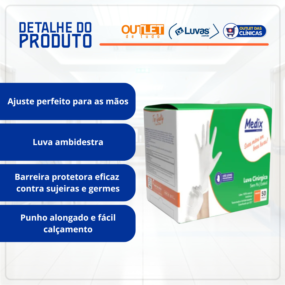 Luva Cirúrgica de Látex Estéril Branca Sem Pó 50 Pares Selo Anvisa Medix