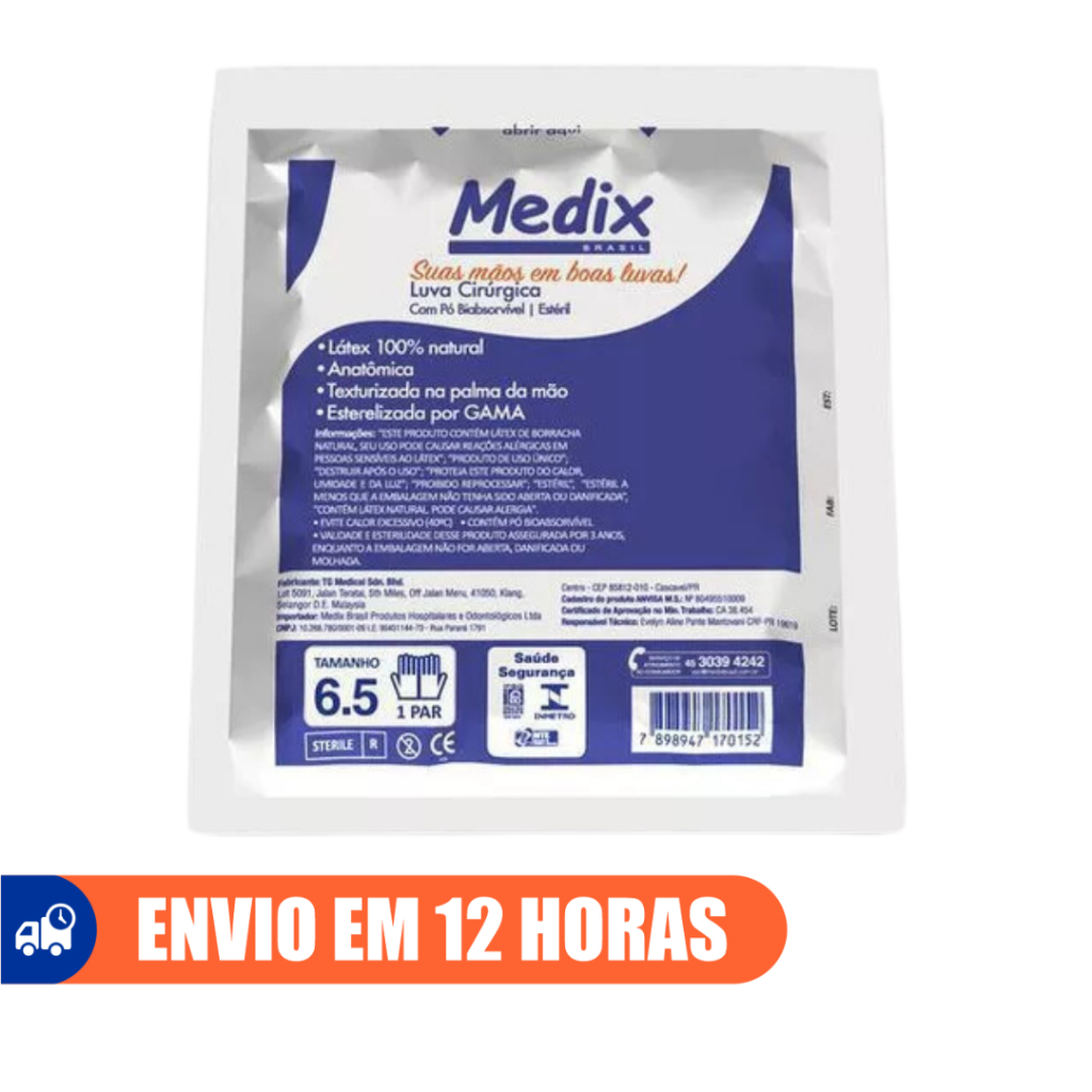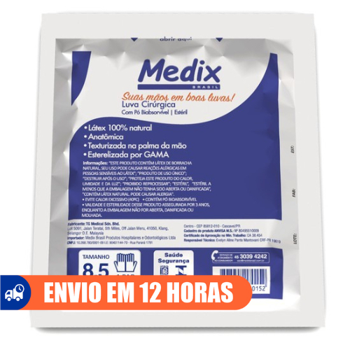 Luva Cirúrgica de Látex Estéril Branca Com Pó 50 Pares Selo Anvisa Medix