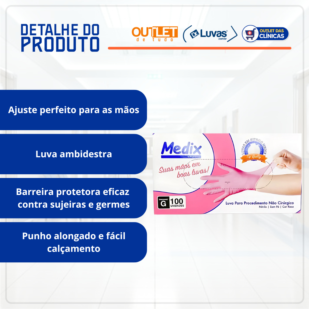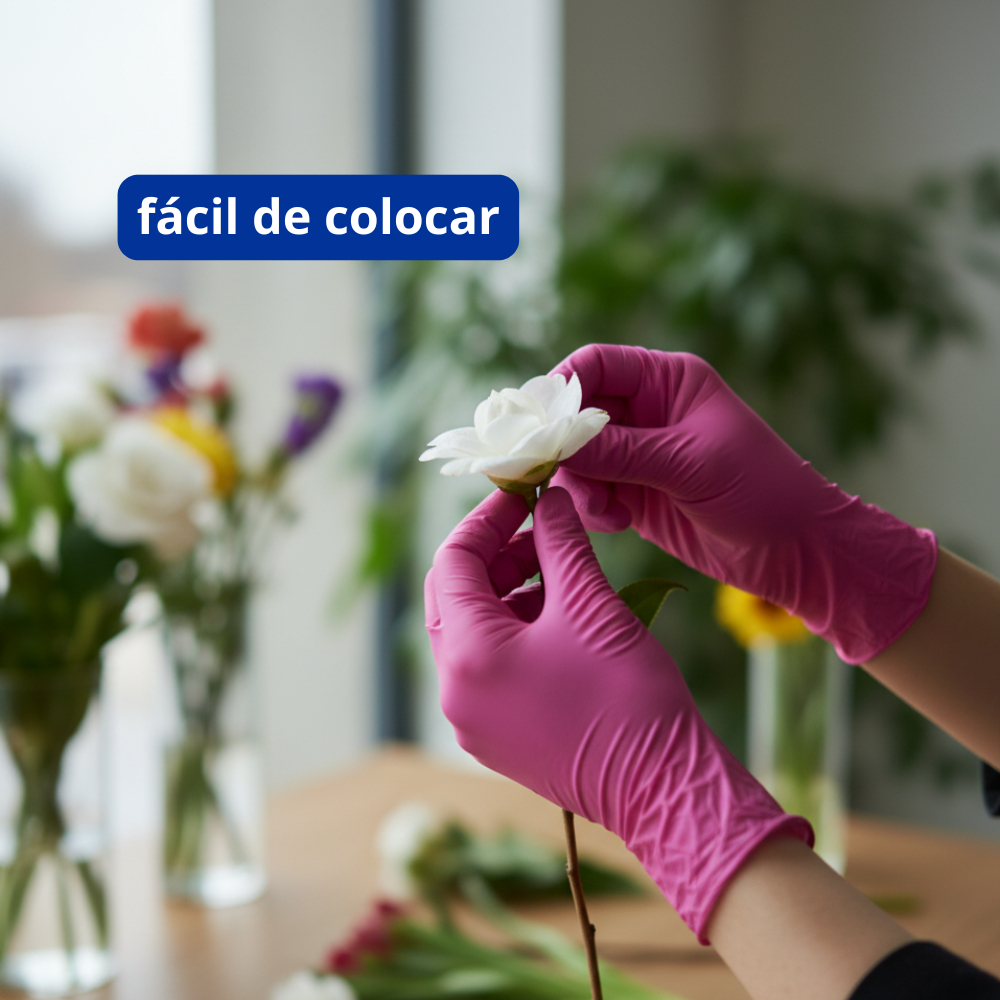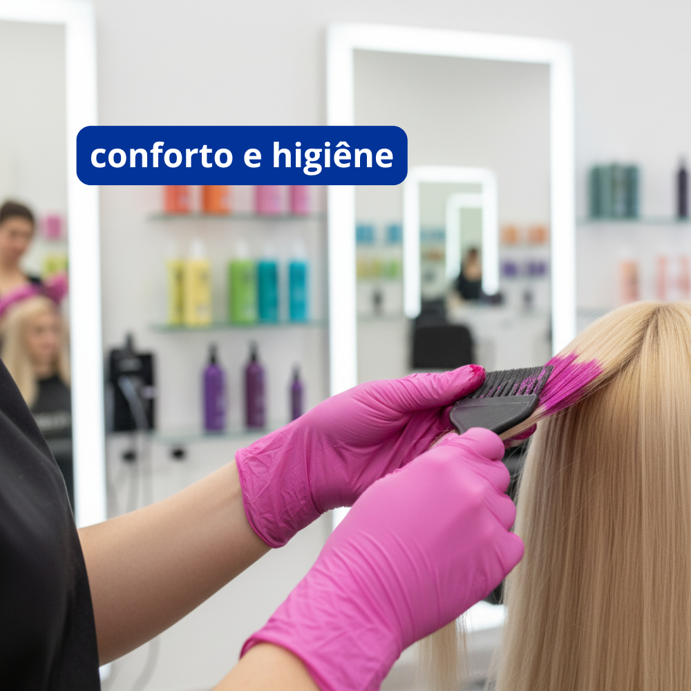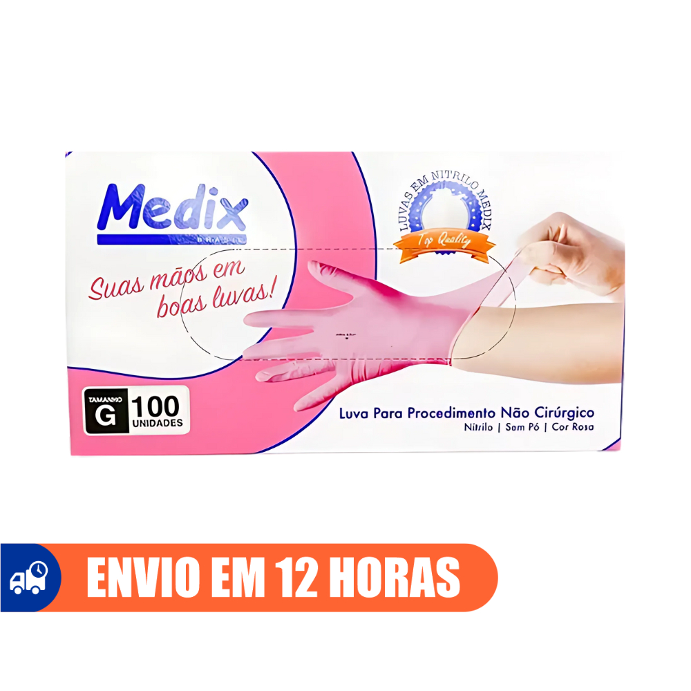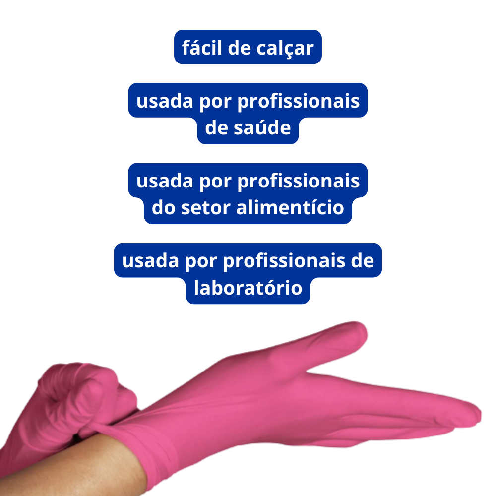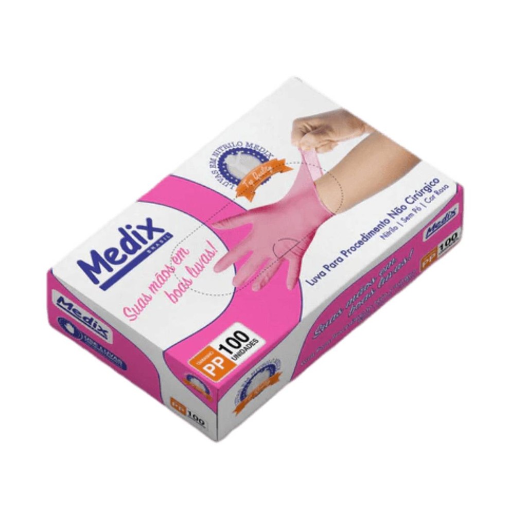 Luva de Procedimento Nitrílica Rosa Sem Pó 100un Selo Anvisa Medix