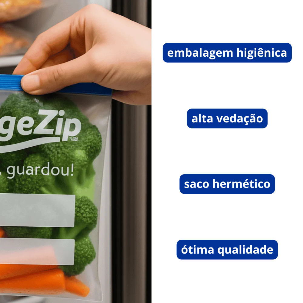 Saco Zip Fecho Slider Para Alimentos e Utilidades Marca Talge